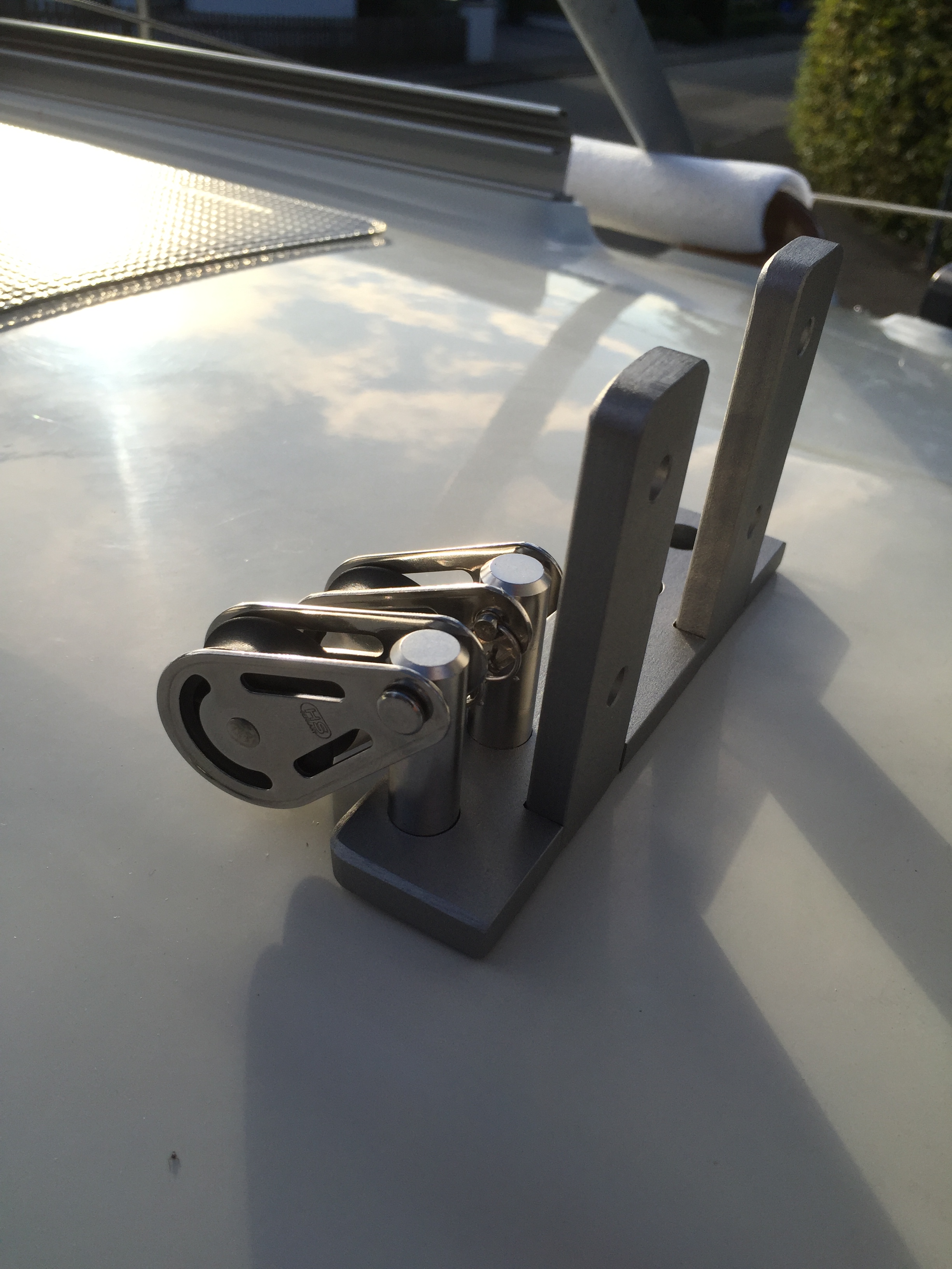Zum Thema Umlenkrollen bei Erhalt der Originaloptik hat sich der Vorbesitzer meines Bootes auch schon einmal Gedanken gemacht (Steuerbord hintere Doppelrolle).