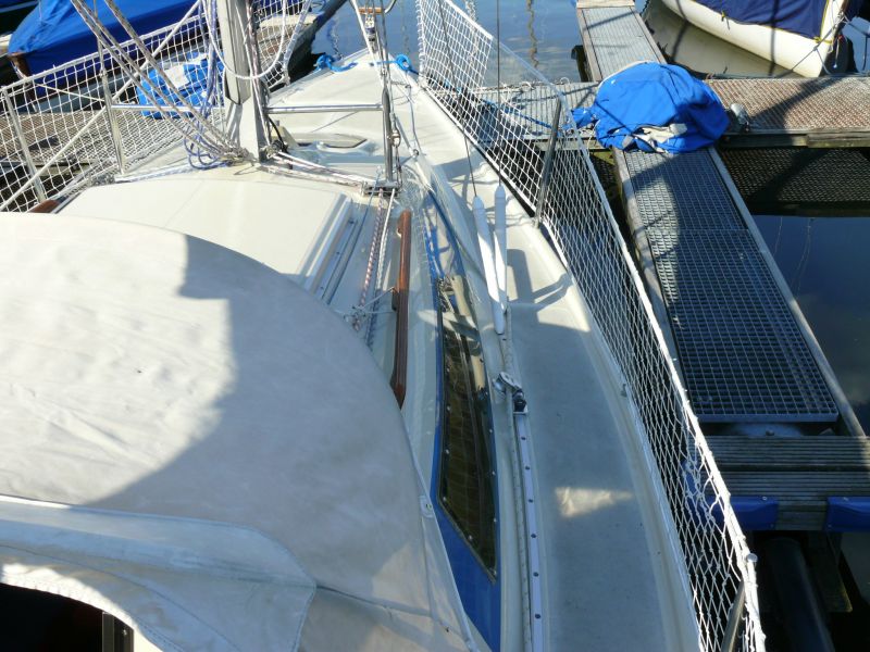 man sieht die Genuaschiene auf deiner Dehler 22 eher selten. Die Werft hat hier gespart und den Anschlagpunkt für die Fock auf den Holepunkt vor dem Handlauf gelegt.