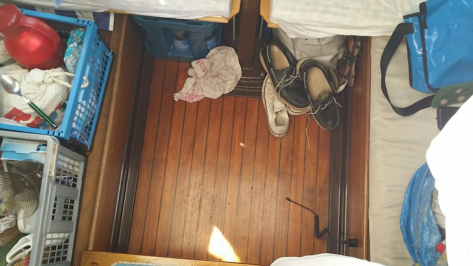 - Können sich im Laufe der Zeit zwei Tassen Wasser, das von oben in die Kajüte gekommen ist, unter der Holzplatte verstecken und nun mit einem Mal so geballt wieder hervortreten?