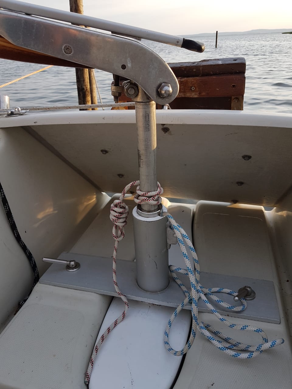 Es fehlen also die Rollen und die Klemme an der Pinne, sowie das schwarze quadratische Teil. Braucht man das? Werde mal den Vorbesizer fragen, ob er die Teile noch hat.