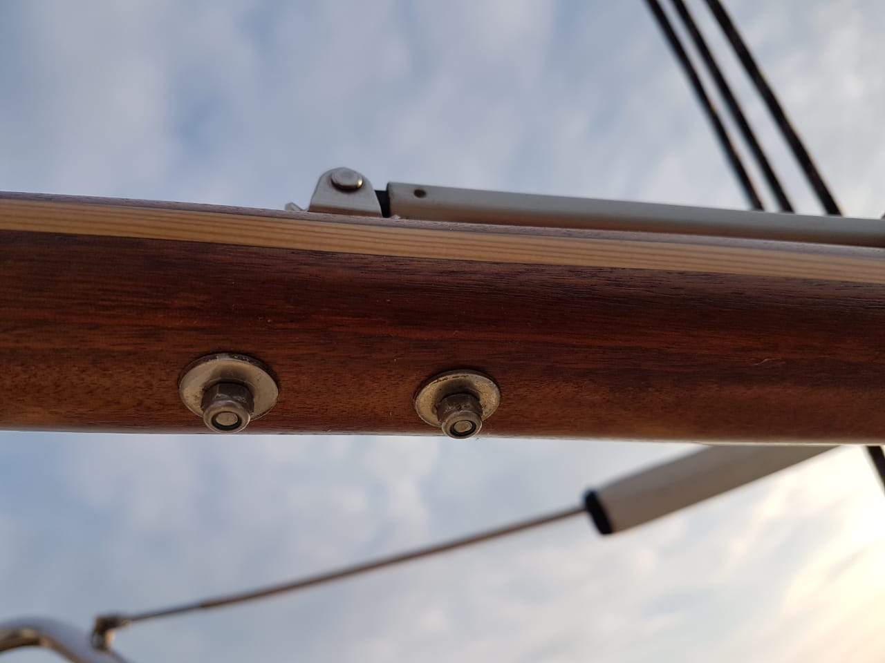 Ich sehe mir das am Wochende mal im Detail an und mache ein paar Fotos. Sieht mir aber aus der Erinnerung alles Original aus. Der Vorbesitzer hat die Pinne neu machen lassen. Ich befürchte, dass dabei etwas verloren gegangen ist. Ich habe aber eine kleine Kiste mit Teilen mitbekommen. Darin werde ich mal stöbern. Ich weiss ja jetzt, was ich suchen muss.
