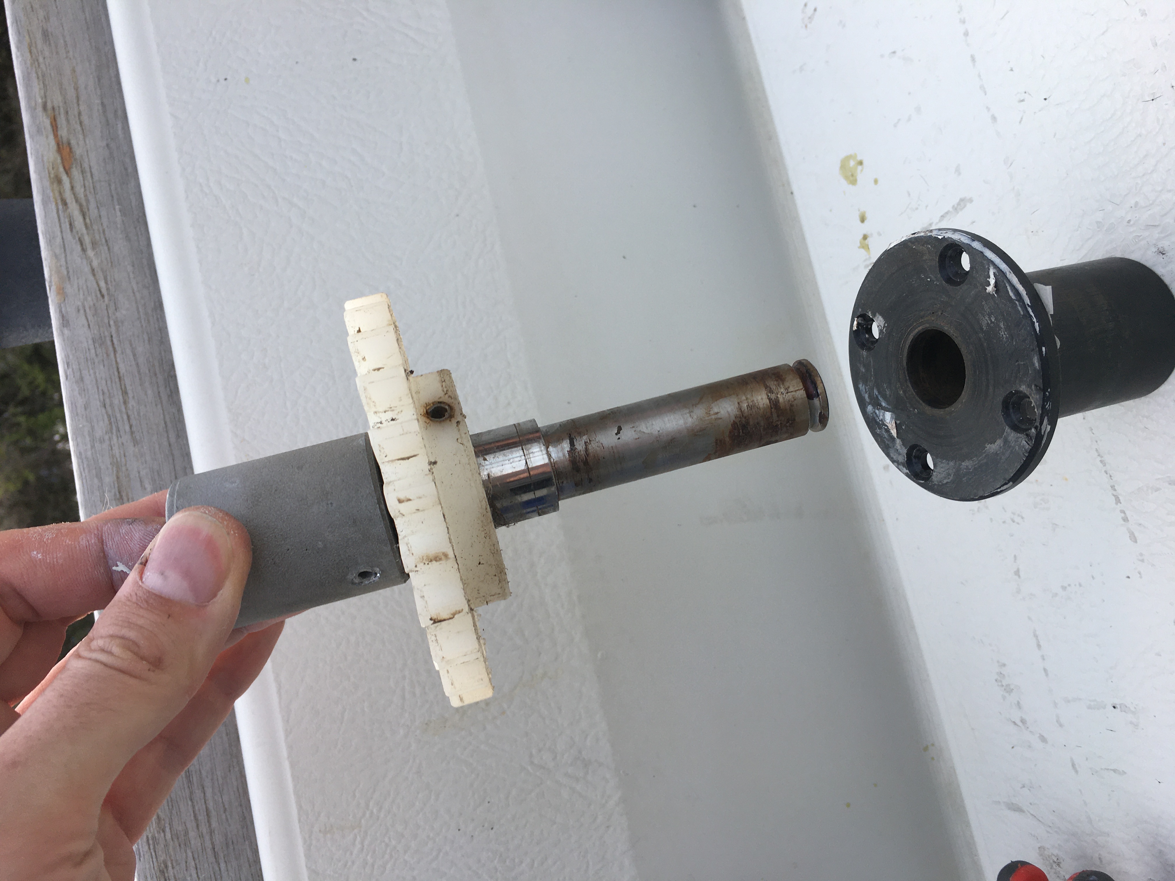 Die kleine Lösung wäre die Welle einfach mit ordentlich Bootsfett zu einzuschmieren. Vielleicht reicht das ja schon. Ist kein großes Ding, ich konnte die Welle einfach nach oben rausziehen.