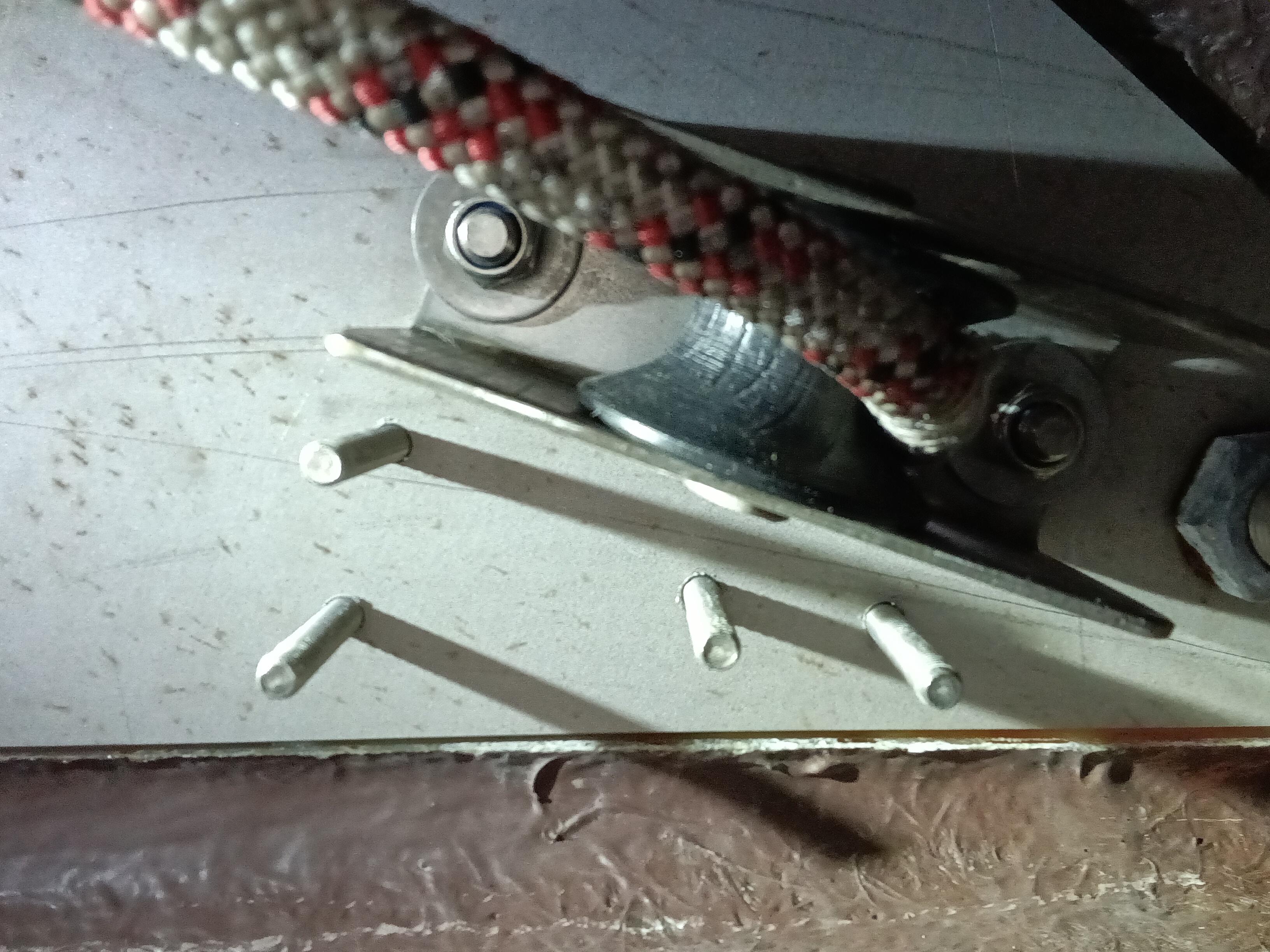 Der Gennakerbaum ist vollständig aus Edelstahl gefertigt . Zusätzlich wurde ein klappbares Wichard Decksauge (57 x 51 mm, Lochdurchmesser 8mm) montiert. Meine Gedanken sind bei etlichen VA-Bohrern und -gewindedrehern, die ihr Leben lassen mussten...
