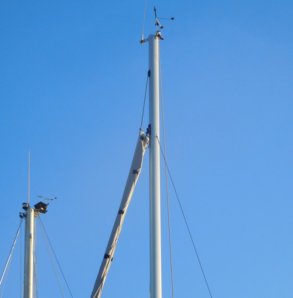 Allerdings muss ich auch dazu sagen, dass mein Mast vom Voreigner wohl mal überdehnt wurde, der Mast also im Ursprungszustand schon krumm ist. Durch das etwas höher angeschlagene Vorstag kann ich den Mast leichter gerade trimmen und trotzdem bekomm ich noch leicht eine Biegung in den Mast rein, wenn ich das Achterstag anspanne.