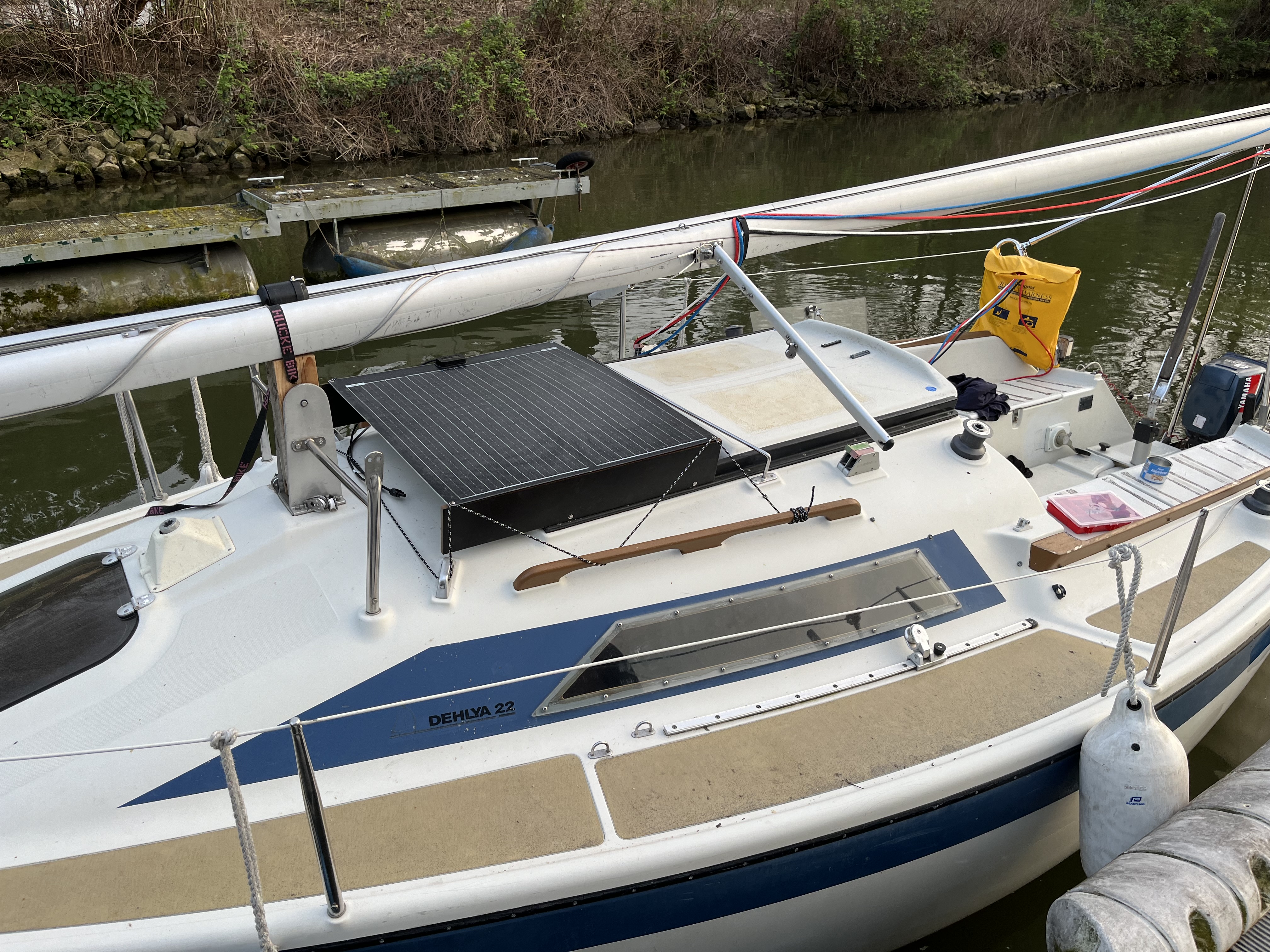 Ich habe auf dem kajütdach , direkt hinterm Mast mein solarpanel montiert ....