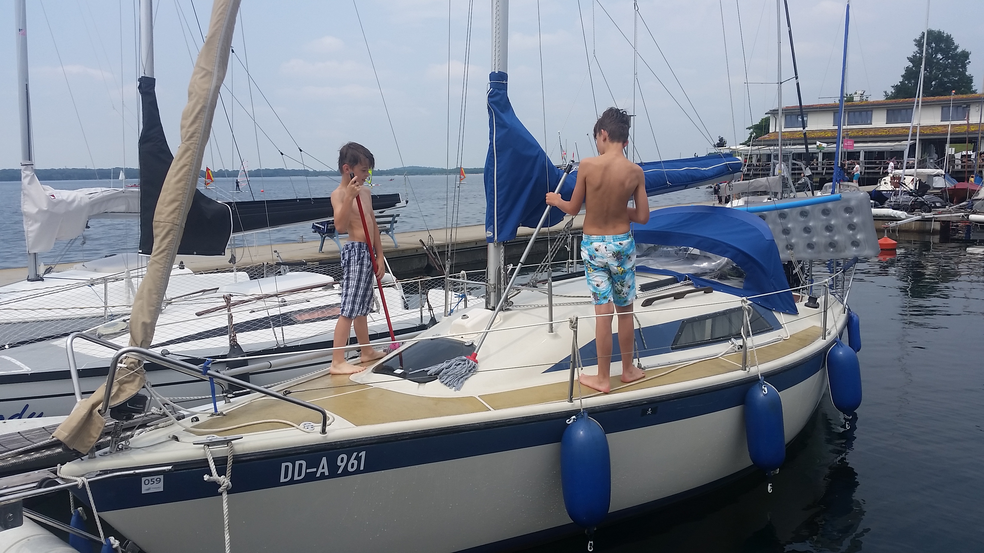 wie hast du das bloß hinbekommen, dass deine Kinder das Boot putzen und den Motor spülen. Solche hätte ich auch gern