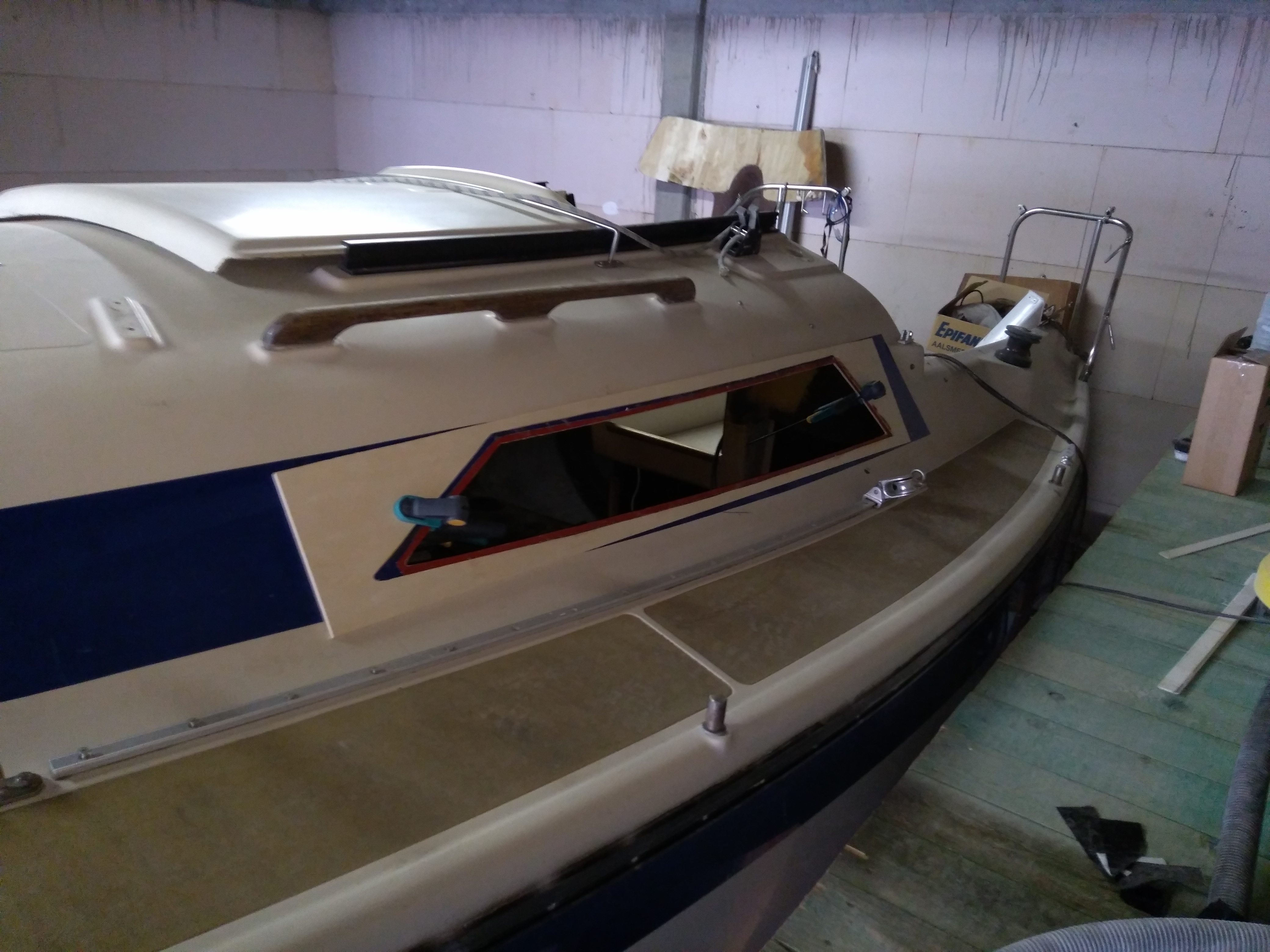 PS: Überleg dir gleich, wie du den neuralgischen Punkt mit den Fenstern lösen willst. Die original von außen aufgeschraubten Fenster sind keine so tolle Lösung und werden immer wieder undicht. Die Lösung beim Dehlya-Refit finde ich sehr gut. Da wurde von innen ein GfK-Rahmen anlaminiert, sodass die Scheibe eben zur äußeren Rumpfoberfläche eingelassen werden konnte. Die Scheibe wurde nur noch geklebt. In dem jetztigen Zustand deines Bootes wäre es leicht, das auch so umzusetzen.