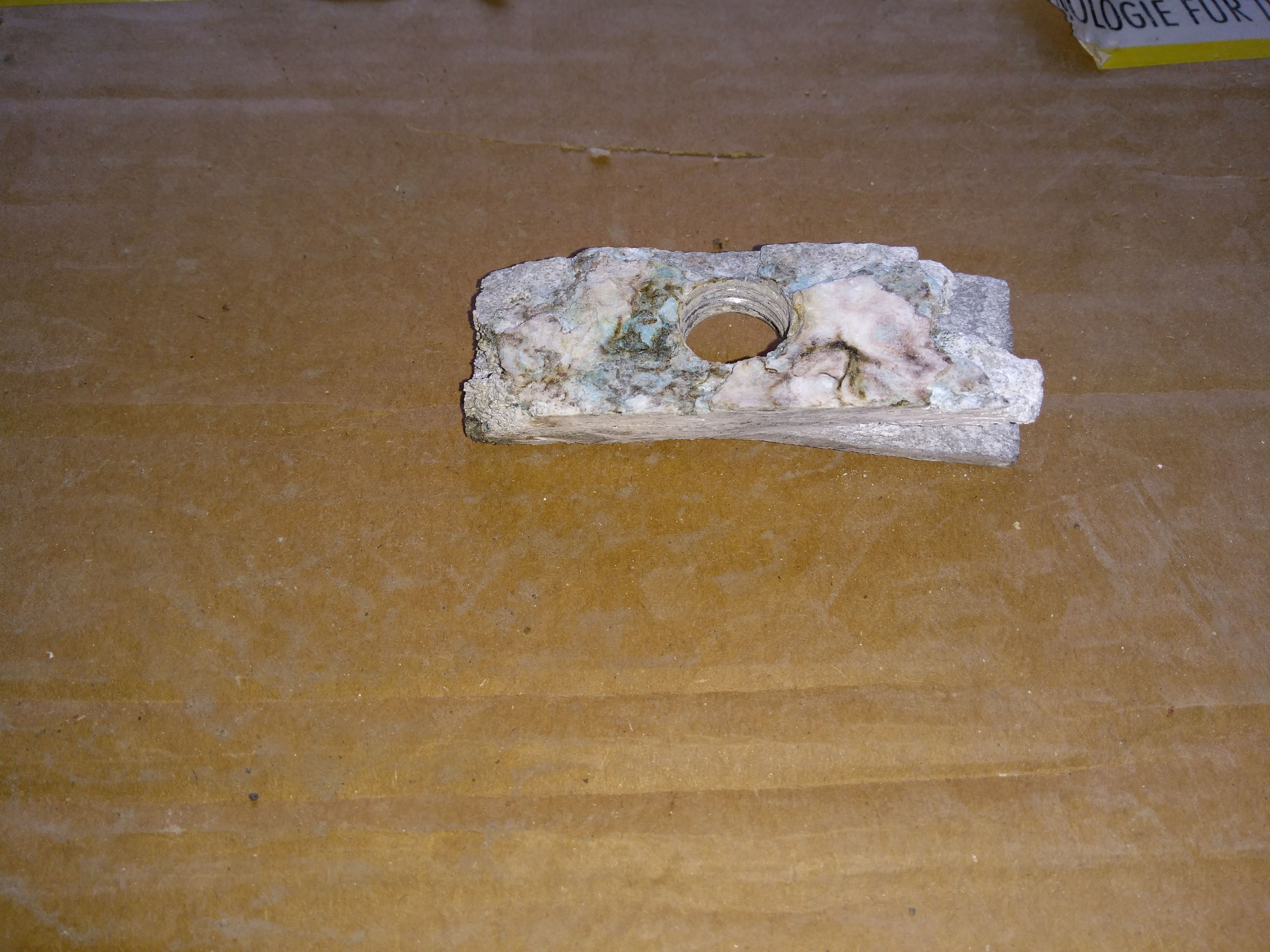 Dabei kam dann raus, dass die Aluplatte korrodiert war. Aber.... noch schlimmer..... das Gewindeloch ging über die Aluplattenaussenkante hinweg. Es war also kein geschlossener Gewindering sondern ein ca 10% geöffneter Ring.