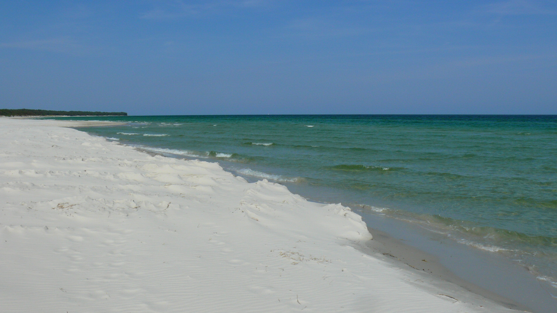 Schneeweiss, unglaublich fein, keinerlei Algen oder Schmodder am Ufer, kristallklares Wasser wie in Kroatien.