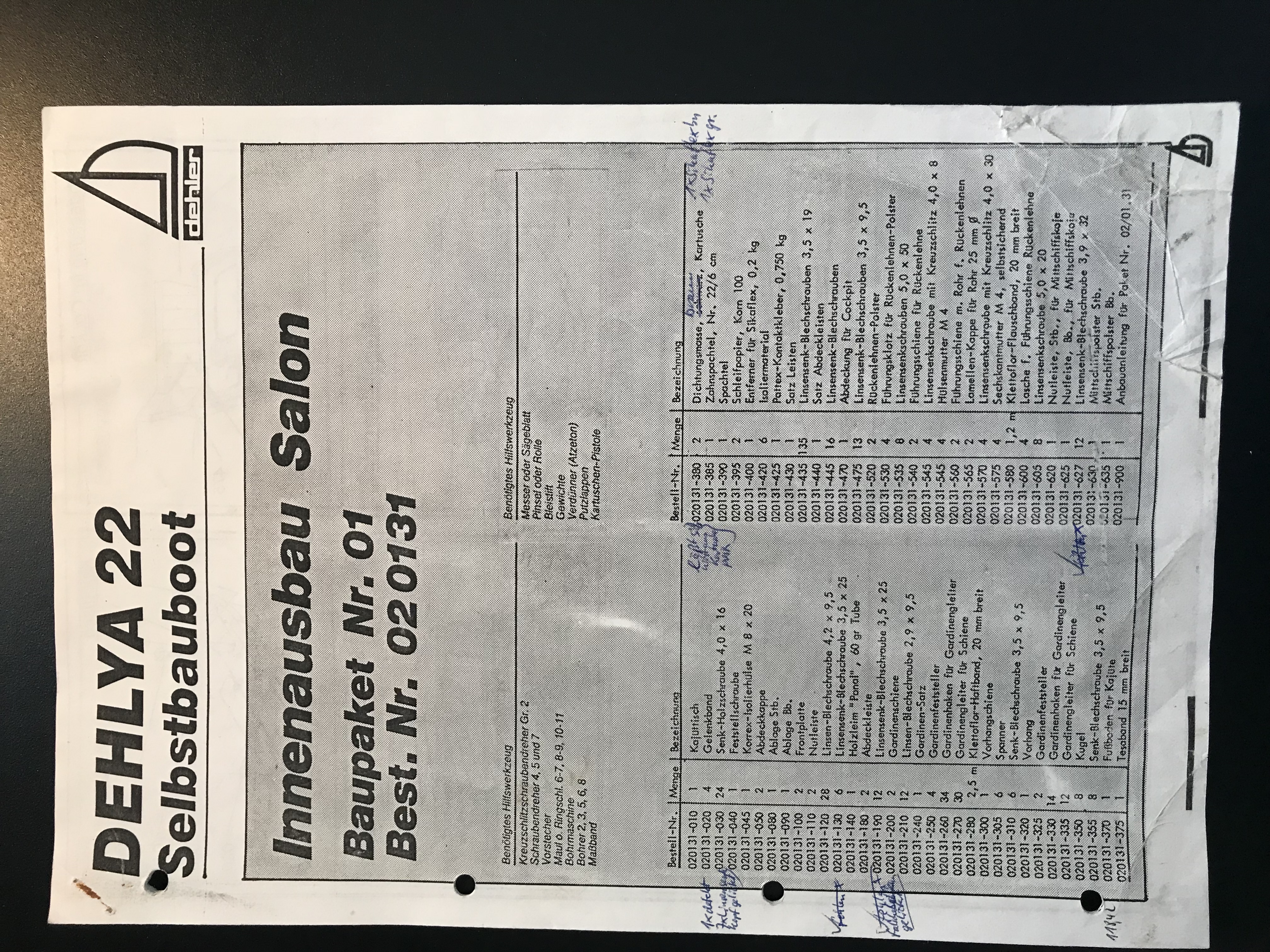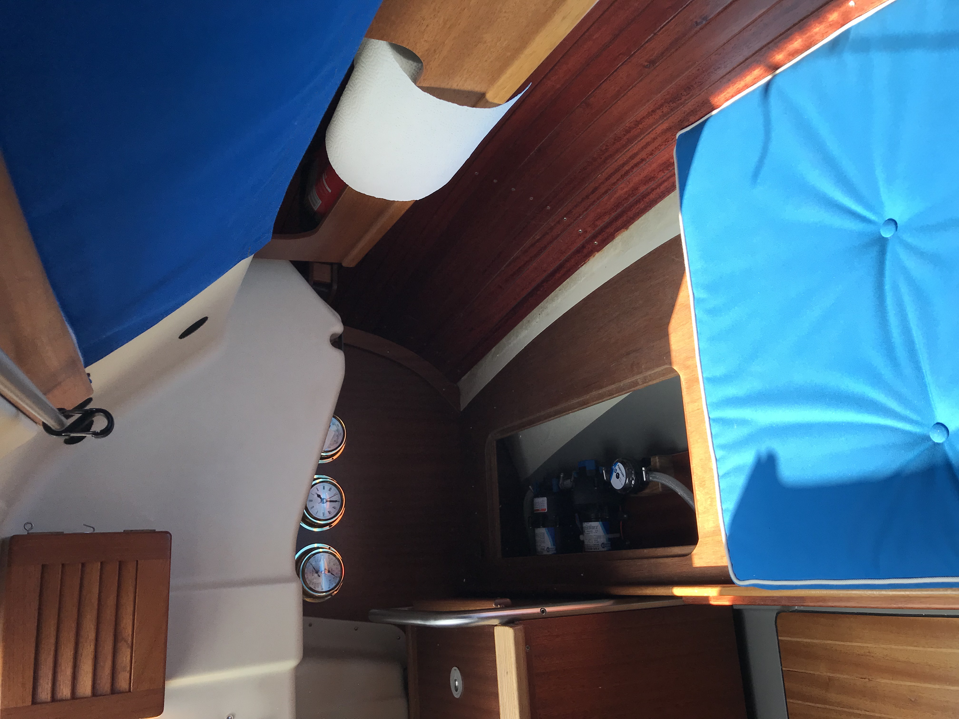 Mein Schiff hat die Segel- und Rumpfnummer 872, es muss damit so ziemlich eine der letzten Dehlyas gewesen sein , ich vermute mal da hat die Werft eventuell schon parallel die Dehler 22 gefertigt und quasi den letzten Dehlyas noch die graue Innenfarbe der neuen Dehler „spendiert “ ...