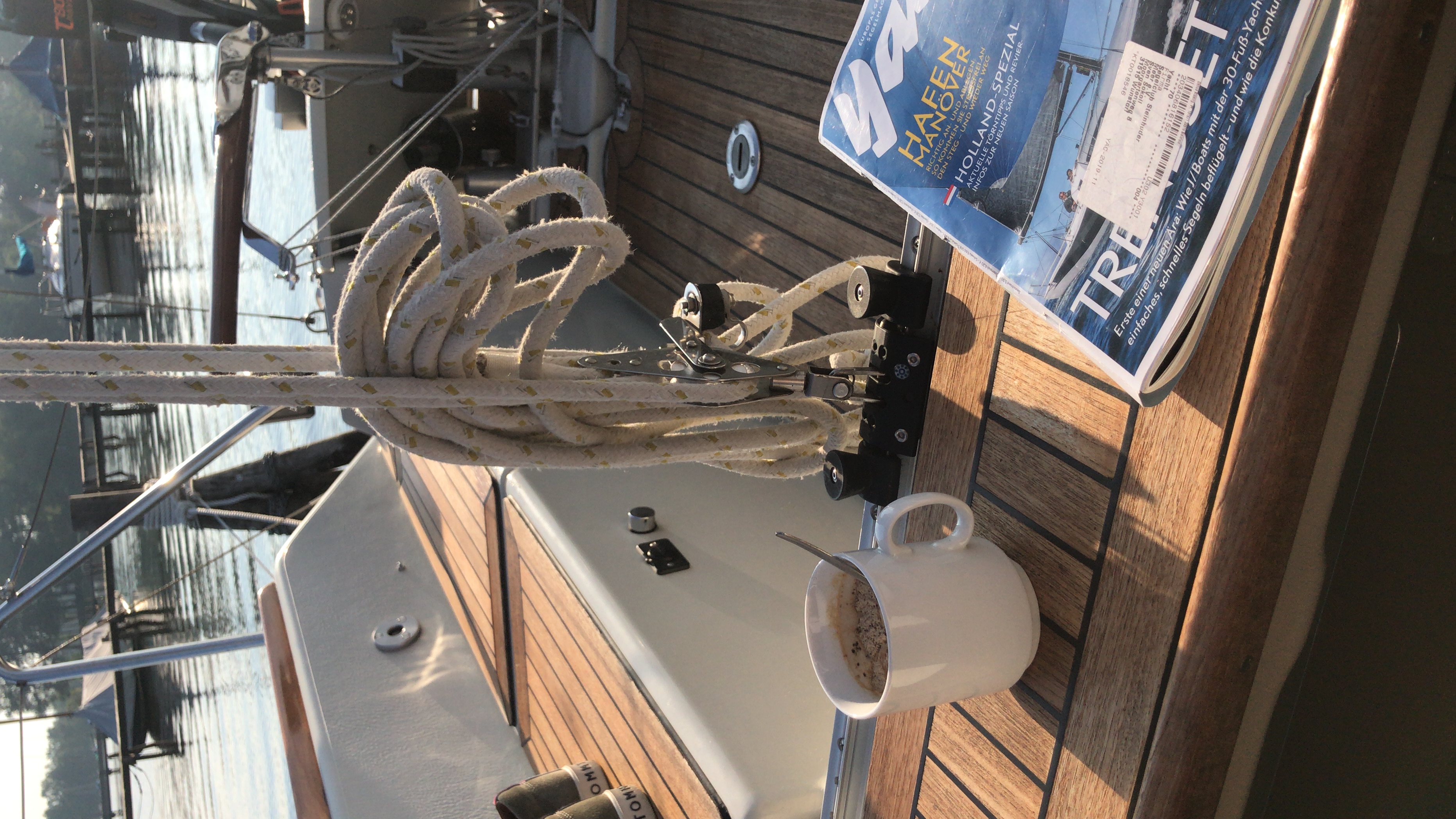 Heute morgen kurz nach dem frühstückscafe‘ begann sie wieder die leidige Suche nach dem Tischbein für den cockpittisch und den gennakerpin , und wo ?