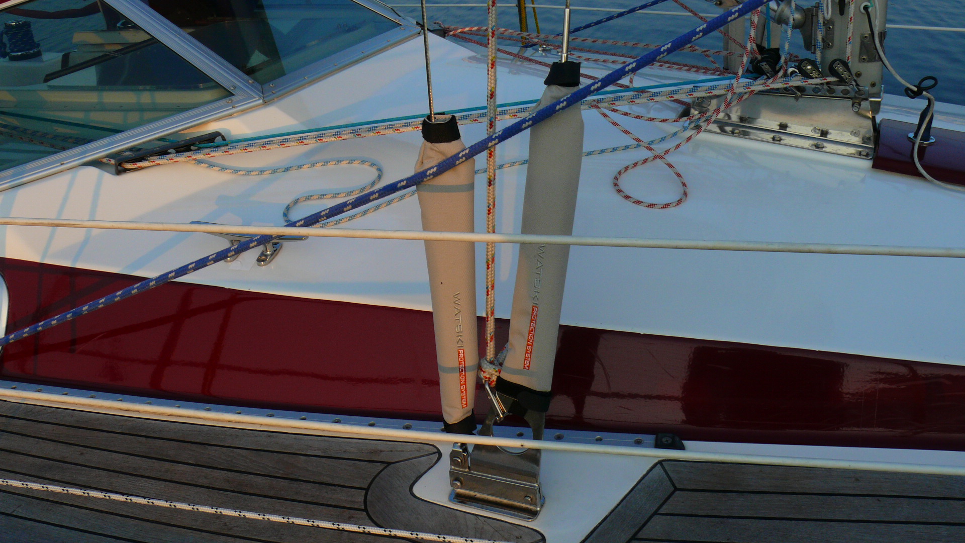 Auf unserer Dehlya sind aktuell die klassischen weißen Kunststoffschoner montiert, leider halten hier die Deckel/Kappen nicht so lange und die Schoner sehen nach ein paar Jahren auch nicht mehr gut aus.