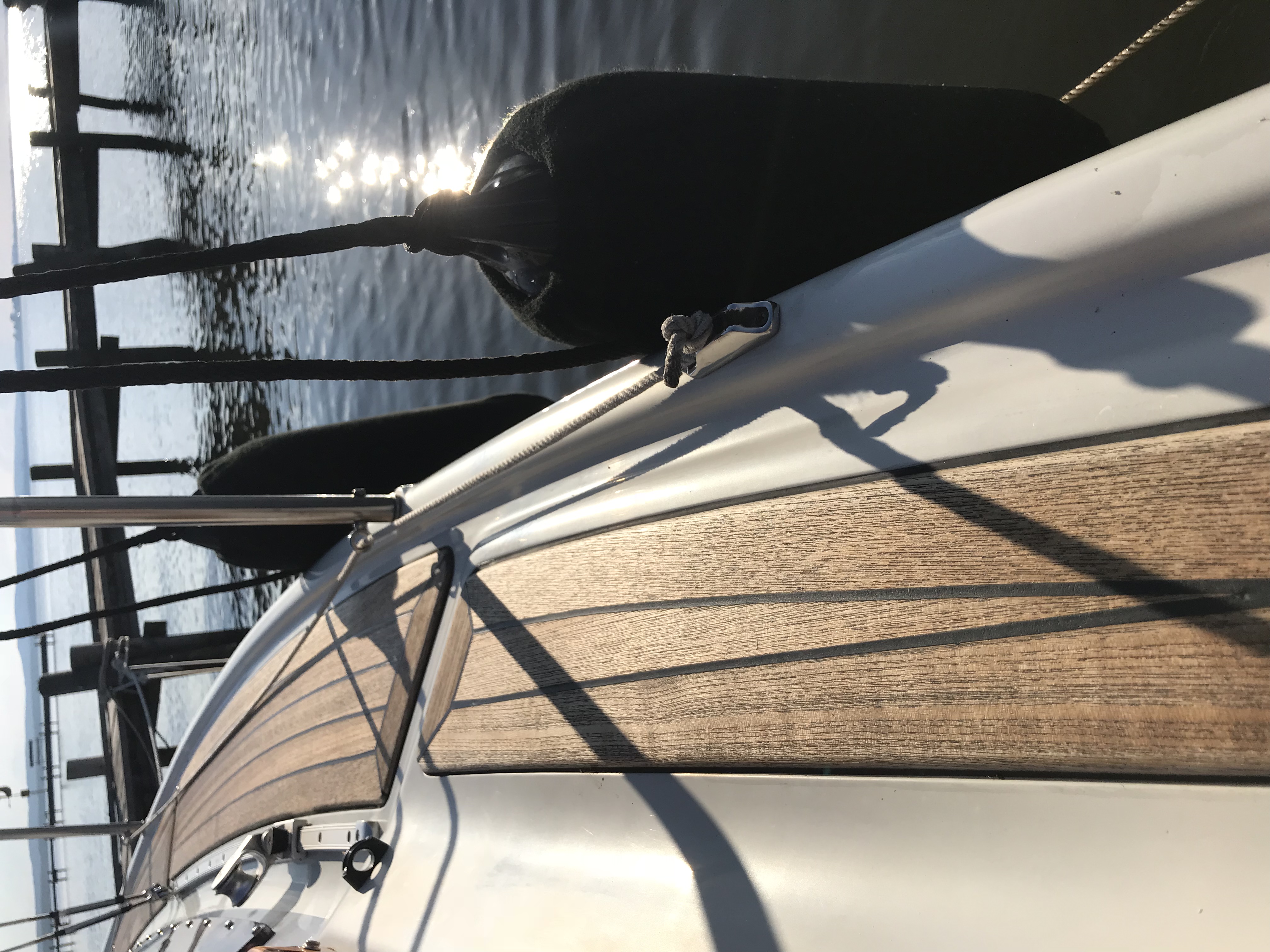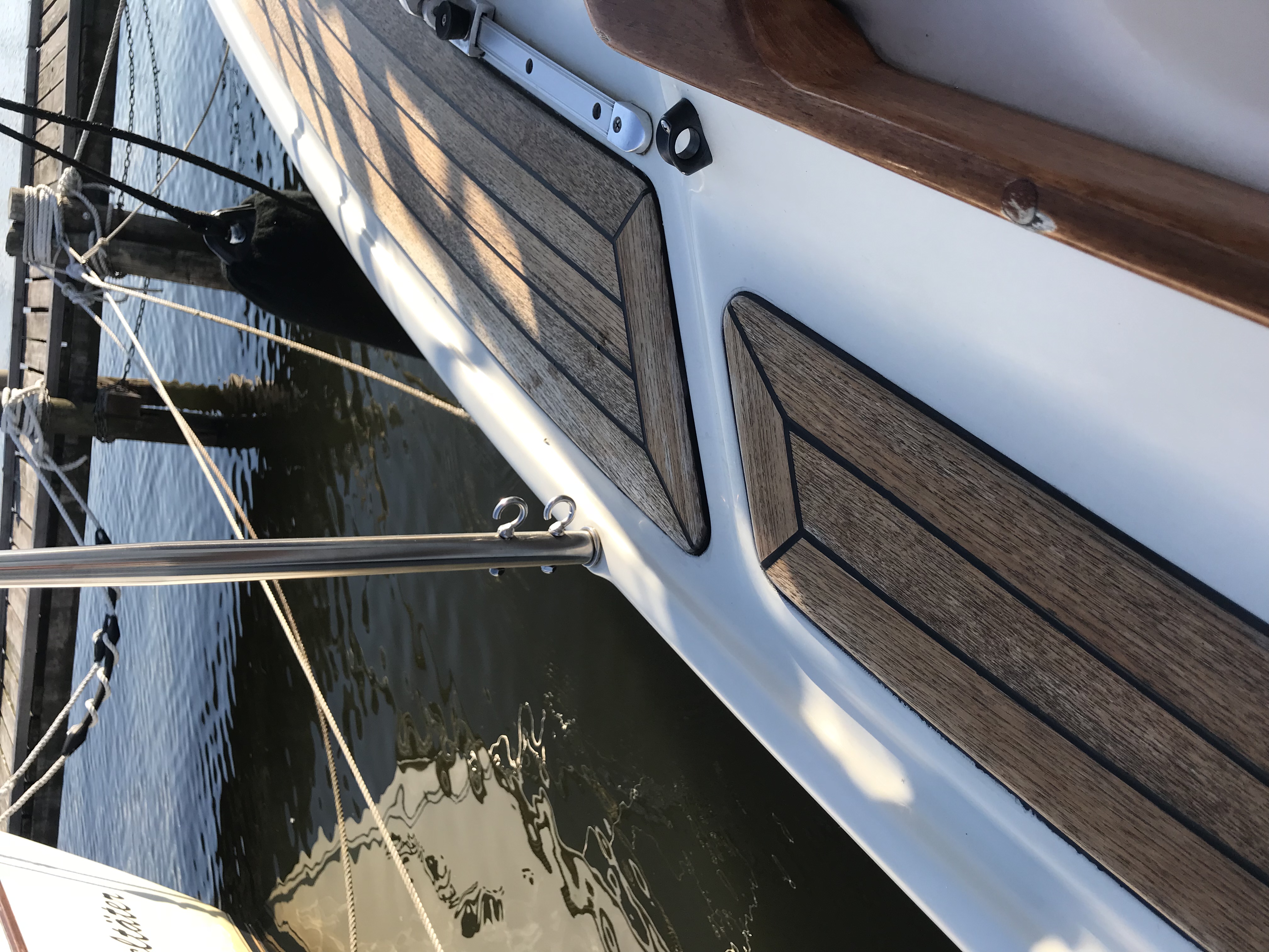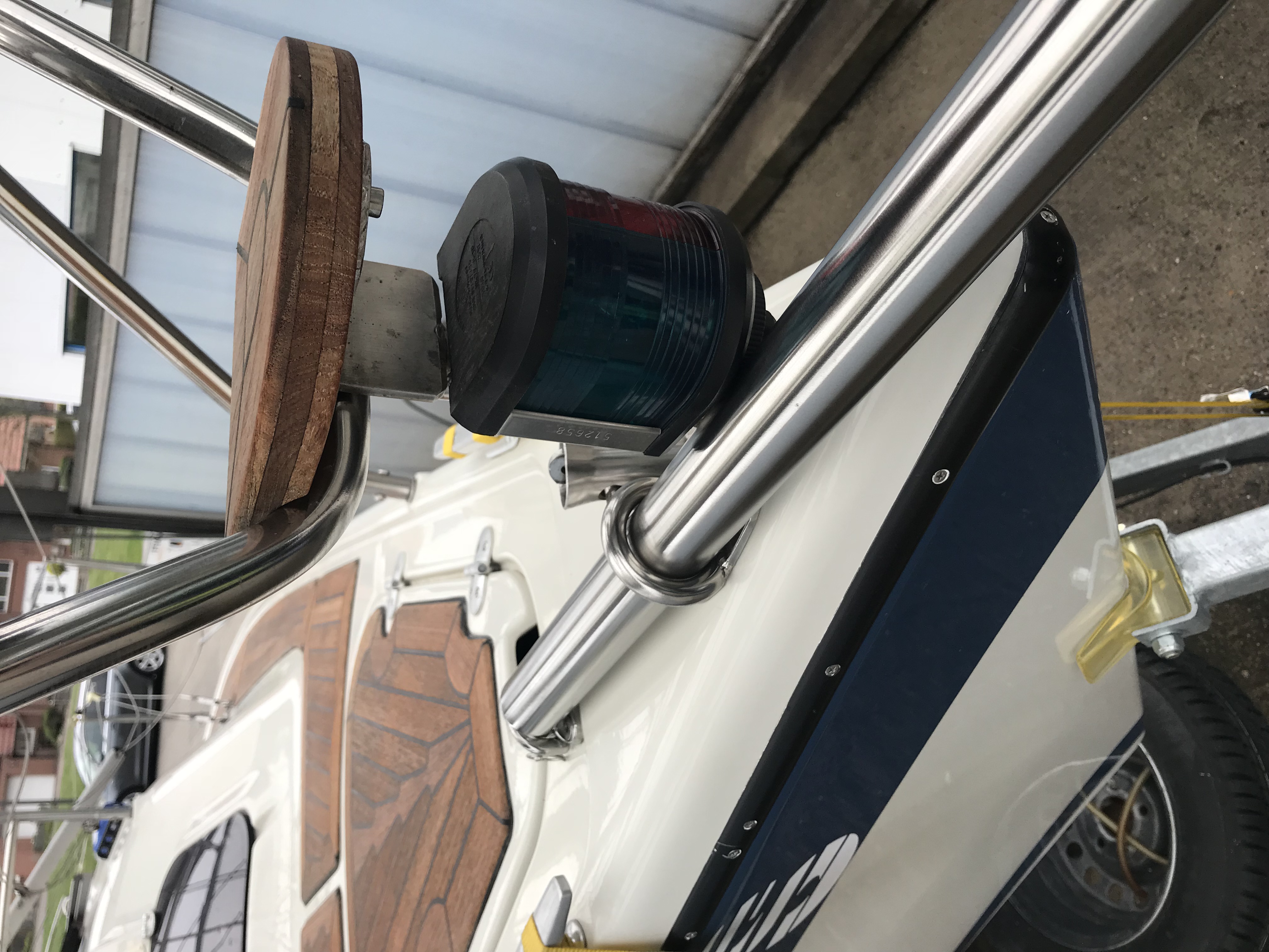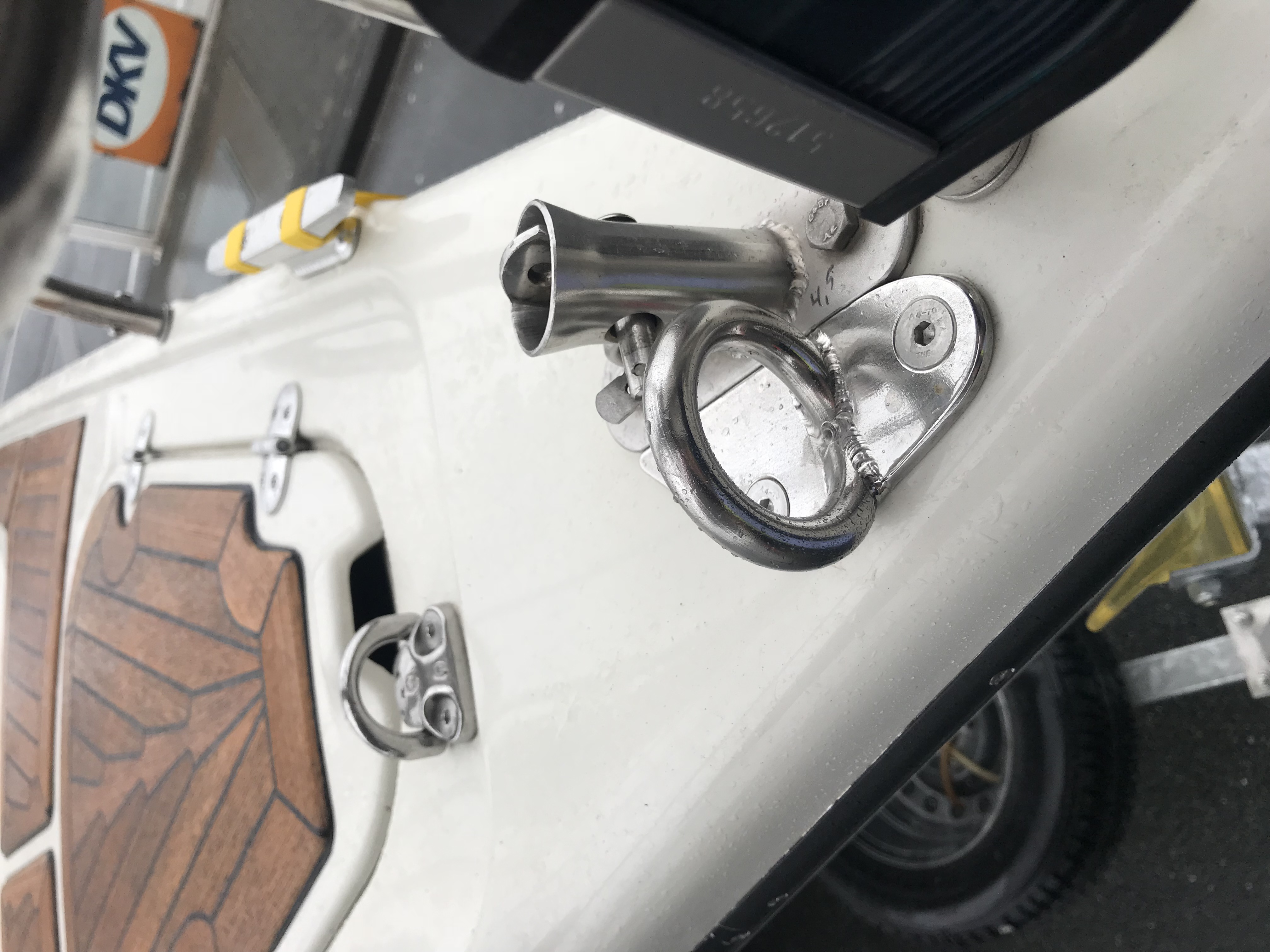 Im Bug ist unter Deck eine Konterplatte aus Aluminium einlaminiert. Da du dort 2 zusätzliche Löcher eingebohrt hast, kann ich nur empfehlen, die Edelstahlschrauben mit Tikal Tef-Gel einzupinseln, bevor die eingeschraubt werden. Die Löcher sollten sehr sorgfältig mit z.B. Sikaflex eingedichtet werden, damit kein Wasser zur Alu-Konterplatte gelangt.