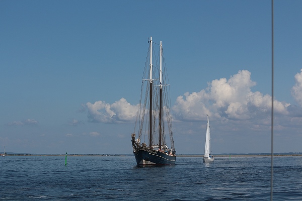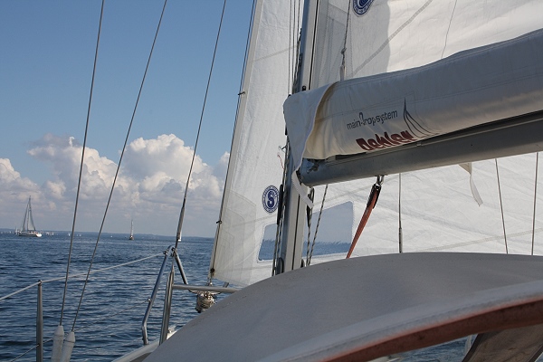Nur auf unserer Rückreise bei der Einfahrt in die Schlei liefen wir dann bei 4 – 5 Bft unter Motor genau gegenan. Na ja, wir hatten dann noch zusätzlich ca. 2 Knoten Strom von vorne und Seegras am Ruder bzw. AB-Schaft hängen. Ich dachte fast wir stehen. Taten wir aber nicht, der AB hat uns mit etwas mehr Gas gaaanz langsam in Richtung Ziel geschoben.