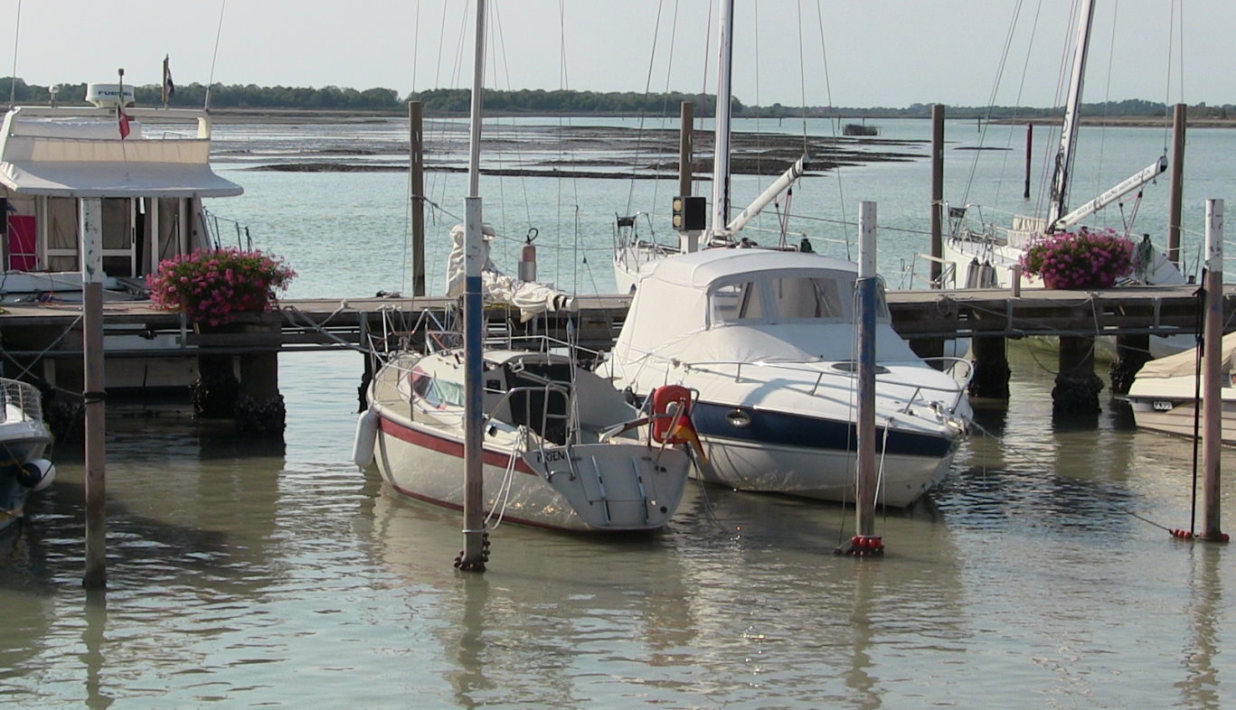 Ebbe und Flut kann zu einen Meter Höhenunterschied ausmachen, die Hafenmeister haben auf entsprechend weit gebundene Festmacher geachtet.
