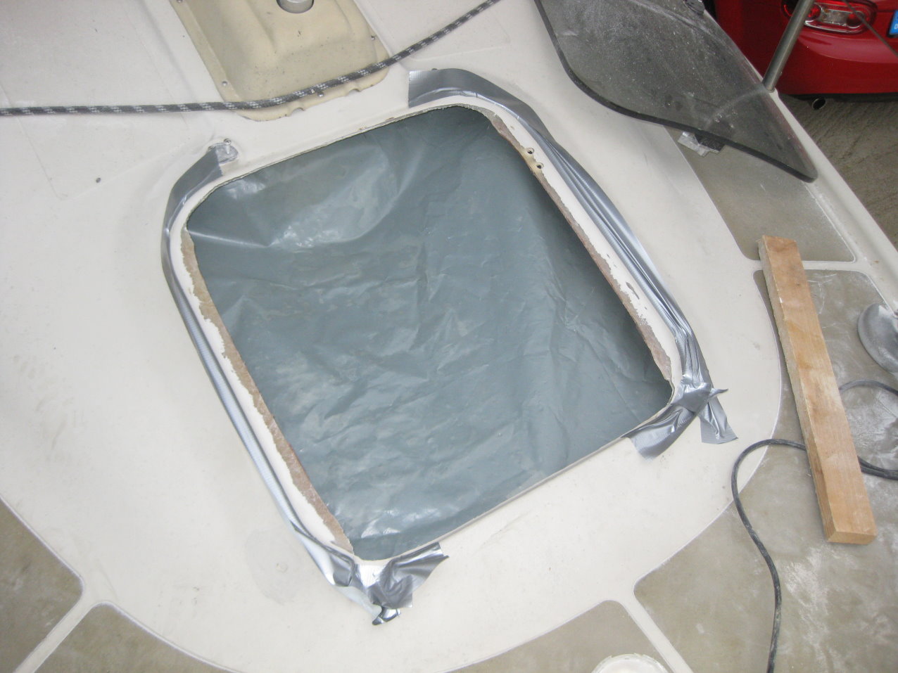 Der Aufwand war groß, der Nutzen aber auch, meine Holde hat es mir gedankt, dass ihre Koje nun trocken bleibt. Außerdem kann ich die Dachluke auch leicht wieder austauschen.