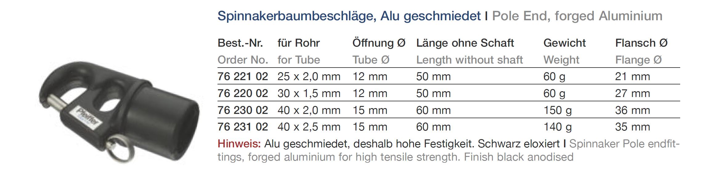 Bei dem teleskopierbaren Spi- und Jütbaum der von Dehler mitverkauft wurde handelt es sich auf der einen Seite um ein 30mm und auf der anderen Seite ein 25 mm Alurohr.