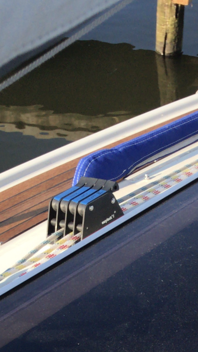 Ich fand die Optik u d Funktion der serienmäßig gelieferten EASYLOCK I Fallenklemmen im Zusammenspiel mit den serienmäßigen 8 mm Fallen vom Typ LIROS HERCULES v öllig in Ordnung , wobei bei mir ursprünglich jeweils links und rechts vom Schiebeluk eine 2er - Batterie montiert war. Ich habe die dann abmontiert und verkauft und gegen zwei 4er Batterien in schwarz eloxiert getauscht. In Zusammenspiel mit der 4-fach Non Moving Parts - Umlenkung ANTAL 4 x 14 habe ich diesen Umbau nicht eine einzige Sekunde bereut und kann diese Modifikation im Originallook nur jedem empfehlen, der Ordnung in seine ins Cockpit umgeleiteten Fallen bringen will ...