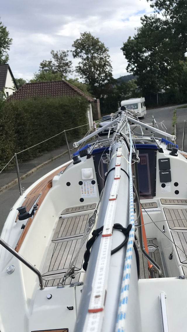 Ich hoffe mal bei richtig schön achterlichen Winden hält das Achterstag ausreichend gegen.