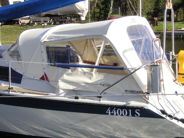 wir haben uns vor der Saison eine Kuchenbude für unsere DY25 bauen lassen und möchten diese nicht mehr missen. Bei Schietwetter im Hafen und auch bei Maschinenfahrt im Urlaub (binnen) hat sie uns schon oft sehr gute Dienste geleistet. Abends muß nicht alles weggestaut werden und das Ganze ist auch sehr sturmtauglich.
