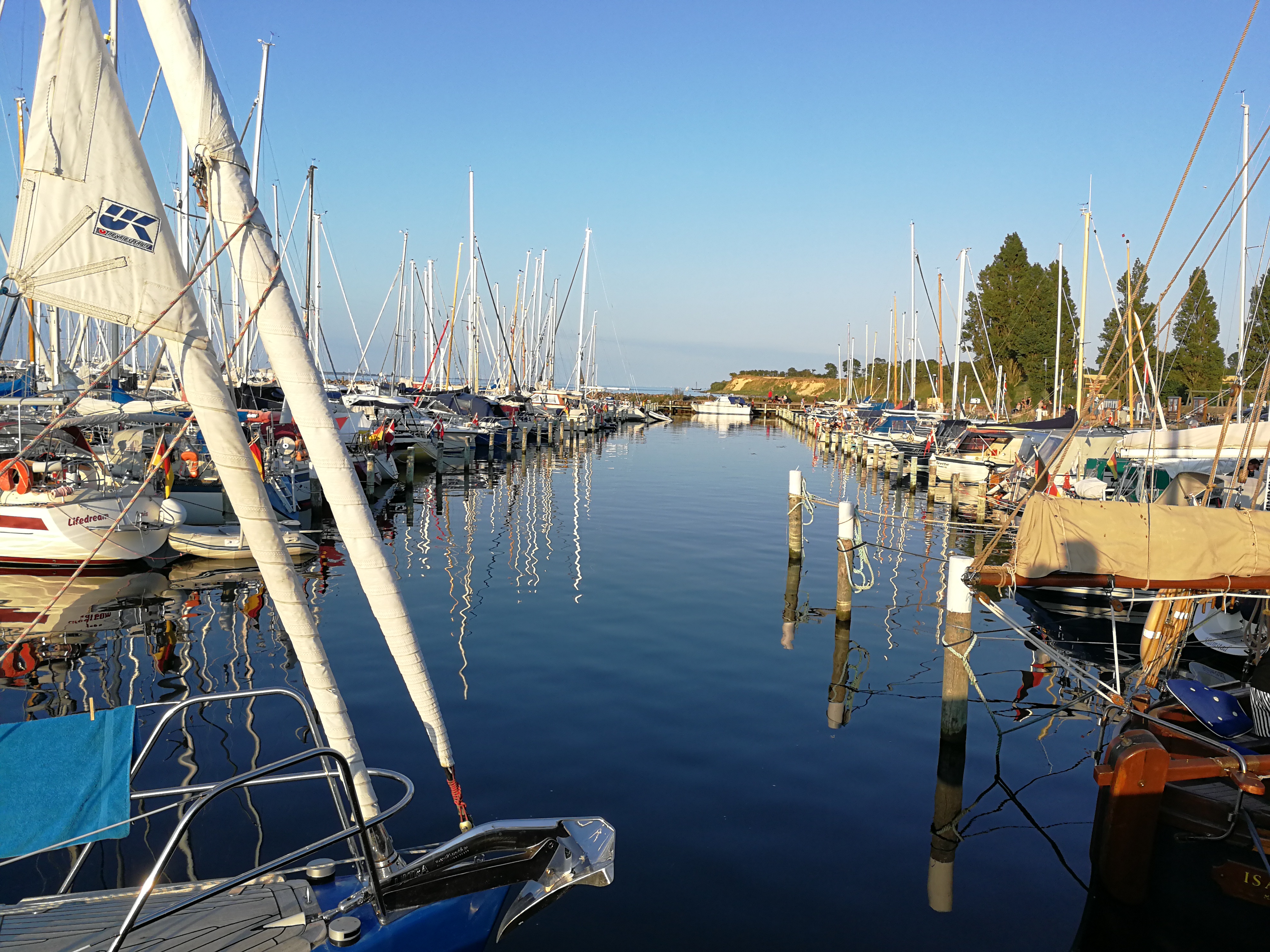 Es gibt einen Kran, ausreichend Gastliegeplätze und Parkmöglichkeiten für's Auto und den Trailer … und das alles zu einem günstigen Paketpreis und in sehr entspannter und freundlicher Atmosphäre