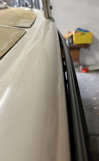 Heute brauche ich bitte mal Euren Rat. An unserer Dehlya 25 (Baujahr 1989) hat sich die Scheuerleiste auf Steuerbord abgelöst. Etwa in Bootsmitte hat die Scheuerleiste zum Rumpf einen Spalt. Ich vermute, daß dort Schrauben ausgerissen sind.