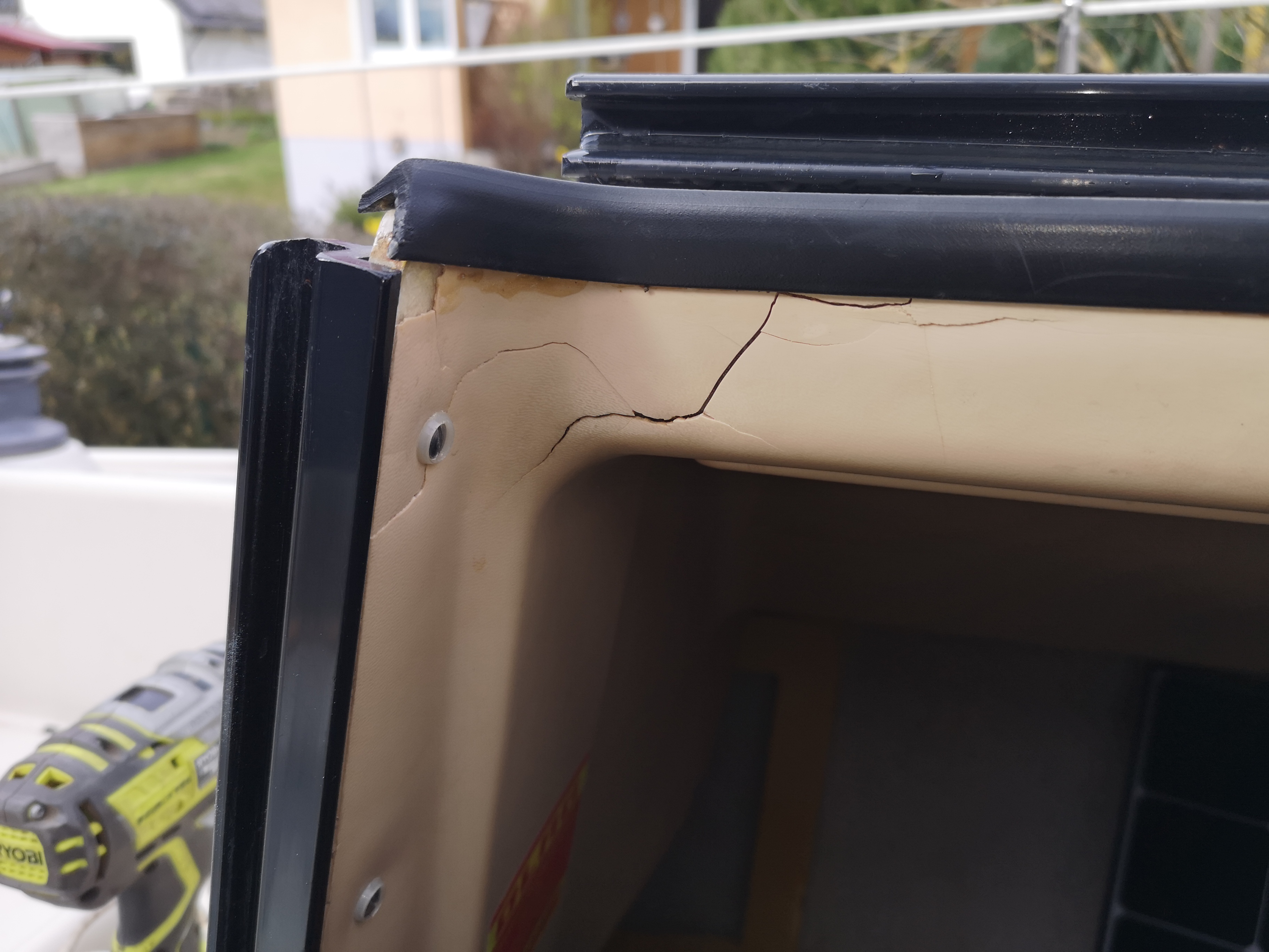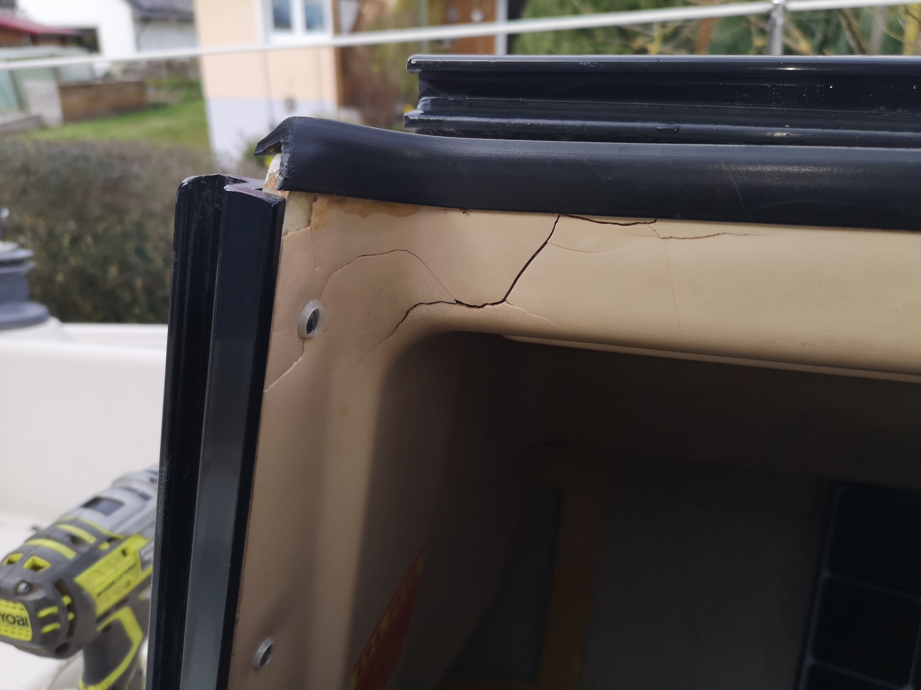 Ich hoffe dass die Bilder mit hochgeladen werden. Am Einstieg ist das Plastik gerissen. Ich werde mich die nächsten Tage mutig dranmachen und die Risse mit einer Masse aus Aceton und darin aufgelösten Legosteinen auffüllen und überpinseln. Mal sehen wie es wird. Neue Bilder folgen.