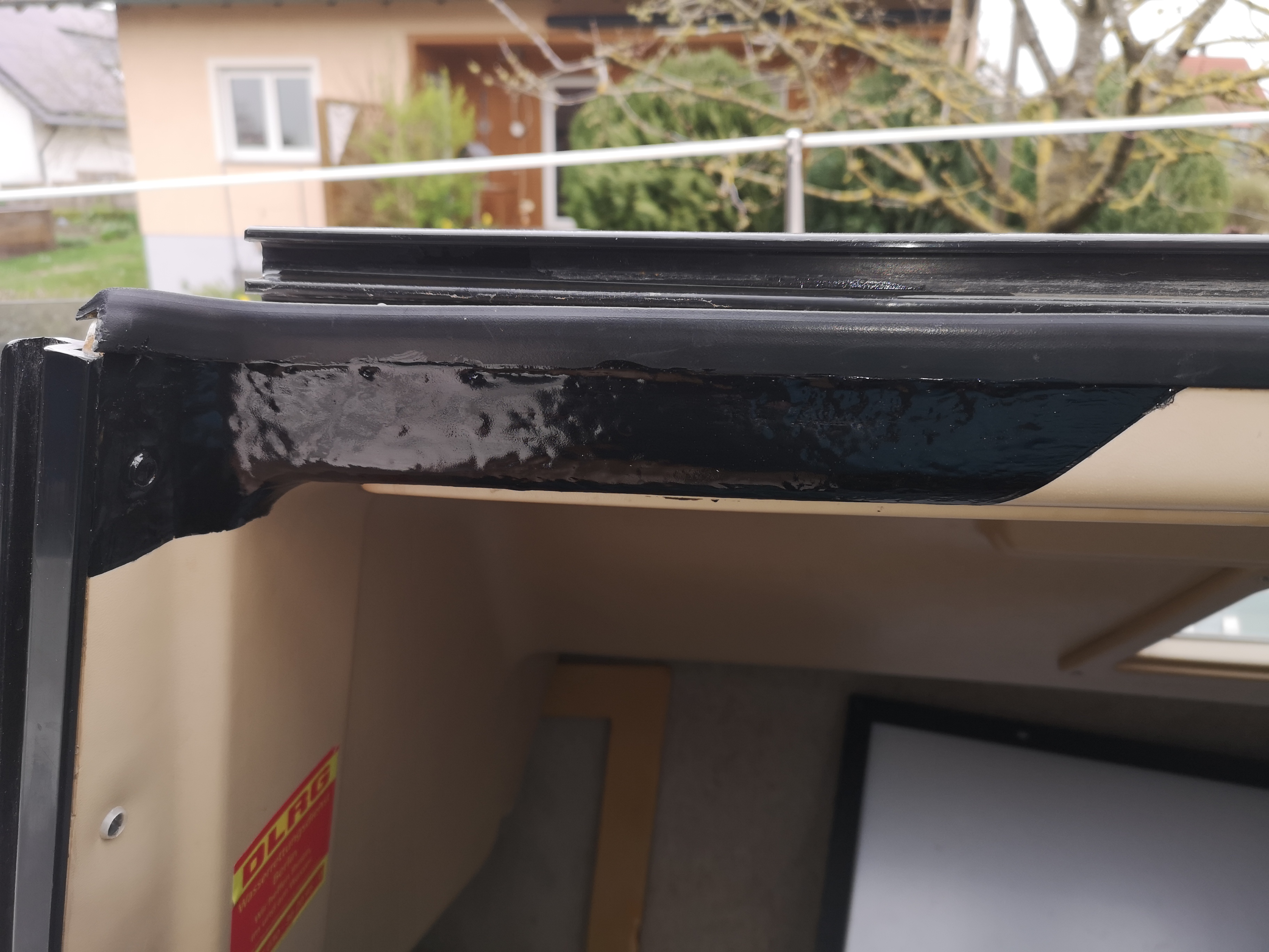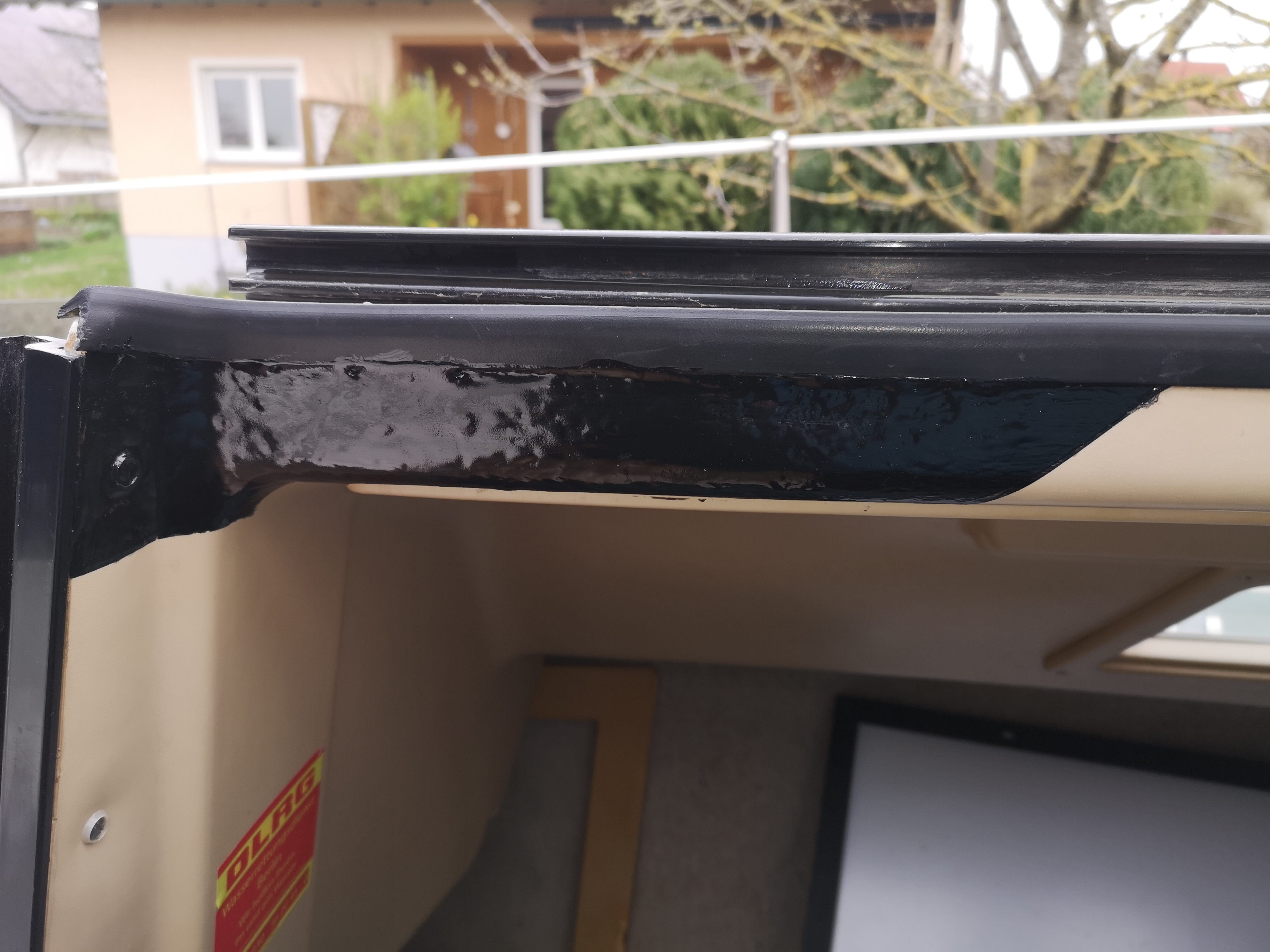 Ich hab´s getan. Über Nacht habe ich 5 schwarze Erdnägel, die als Hering für den Begrenzungsdraht eines Rasenroboters dienten, in einem dicht schliessendem 100 ml Glas, mit Aceton aufgelöst. Das Ergebnis ist am nächsten Tag eine schwarze Pampe, die in der Konsistenz in etwa dem von Lackfarbe entspricht. Aufgerührt und dann mit einem Pinsel in ca 10 Schichten auf die Risse aufgetragen. Aceton verflüchtigt sich sehr schnell, so dass kaum Trocknungszeiten beachtet werden müssen. Der Auftrag verbindet sich in einem Guss mit dem Kunstoffhimmel. Er füllt auch die Risse aus. Leider ergibt sich keine gleichmässige Oberfläche. Ich denke das ist der Schwerkraft und dem Pinsel geschuldet. Wenn ich noch Lust habe schleife ich die Stellen und versuche mit einer Airbrushpistole nochmals, diesmal aber sehr dünn (Kunstoffmasse) darüber zu gehen.