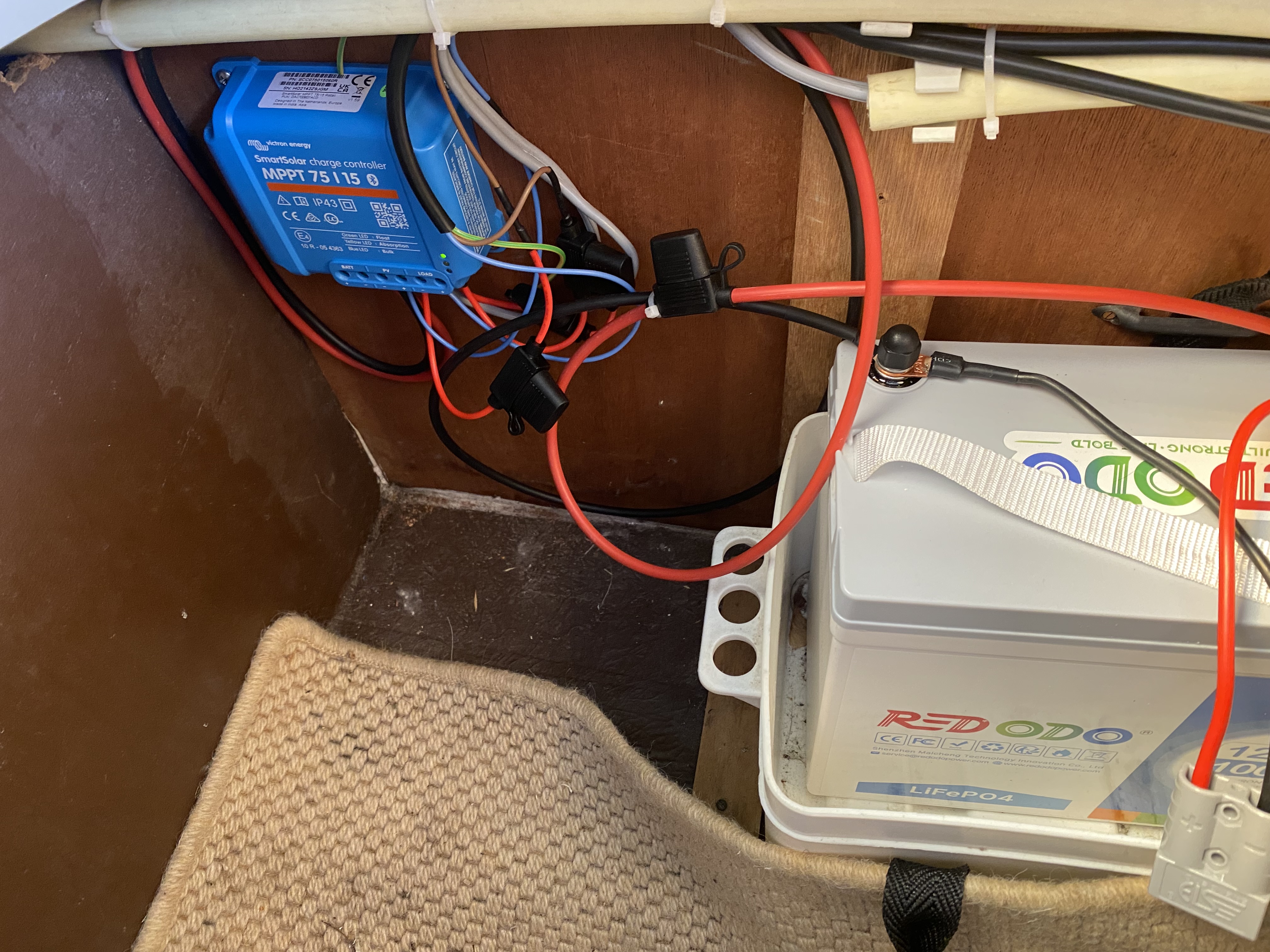 Der Laderegler ist ebenfalls neu und von Victron und eine Überwachung per App via Bluetooth. Kleiner Pluspunkt der Regler stellt sicher, dass die Batterie nicht tiefentladen werden kann. (Mittlerweile sind die Regler sehr günstig und kosten rund 50,- EUR)