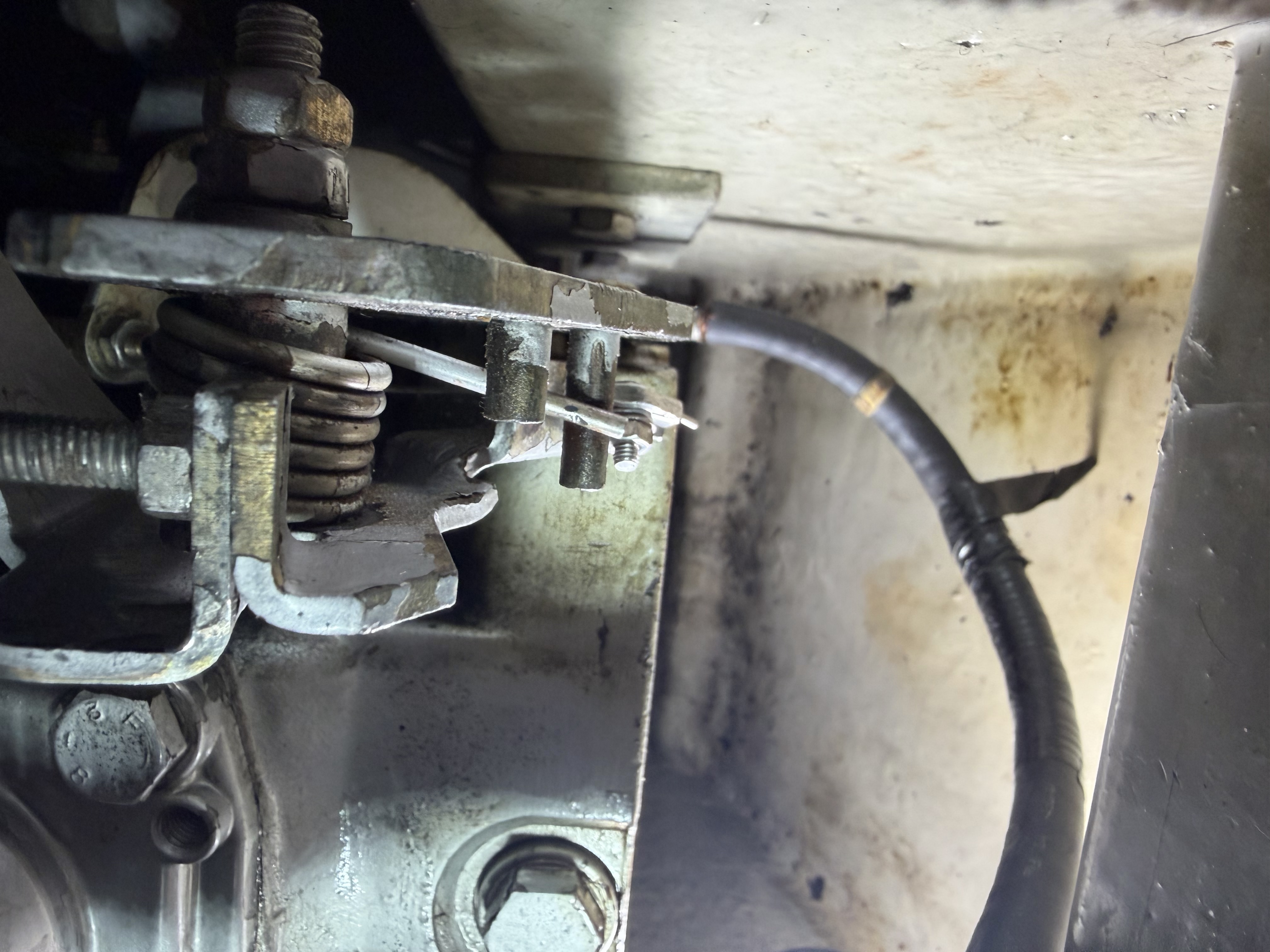 Es ist die Motorkante aus Sicht vom Bug aus hinter der Mechanik für den Gasbowdenzug und den "Totmacher".