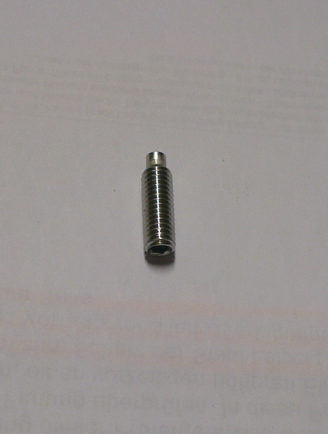 So, da kein Eisenwarenhändler in meiner Gegend die passende Madenschraube als rostfreie Edelstahl-Version auf Lager hatte, habe ich mir die kleinste Einheit - 25 Stück - im Internet bestellt. Da ich für die nächsten 30 Jahre (hoffentlich) nur drei Exemplare brauche, biete ich den Rest hiermit an. Wer also seine Made, die richtig "Edelstahl-Gewindestift M6 x 20 mit Zapfen (V2A)" heißt, erneuern möchte, kann sich bei mir melden. Gibt's geschenkt, nur die 60 Cent Porto müsstet ihr tragen.