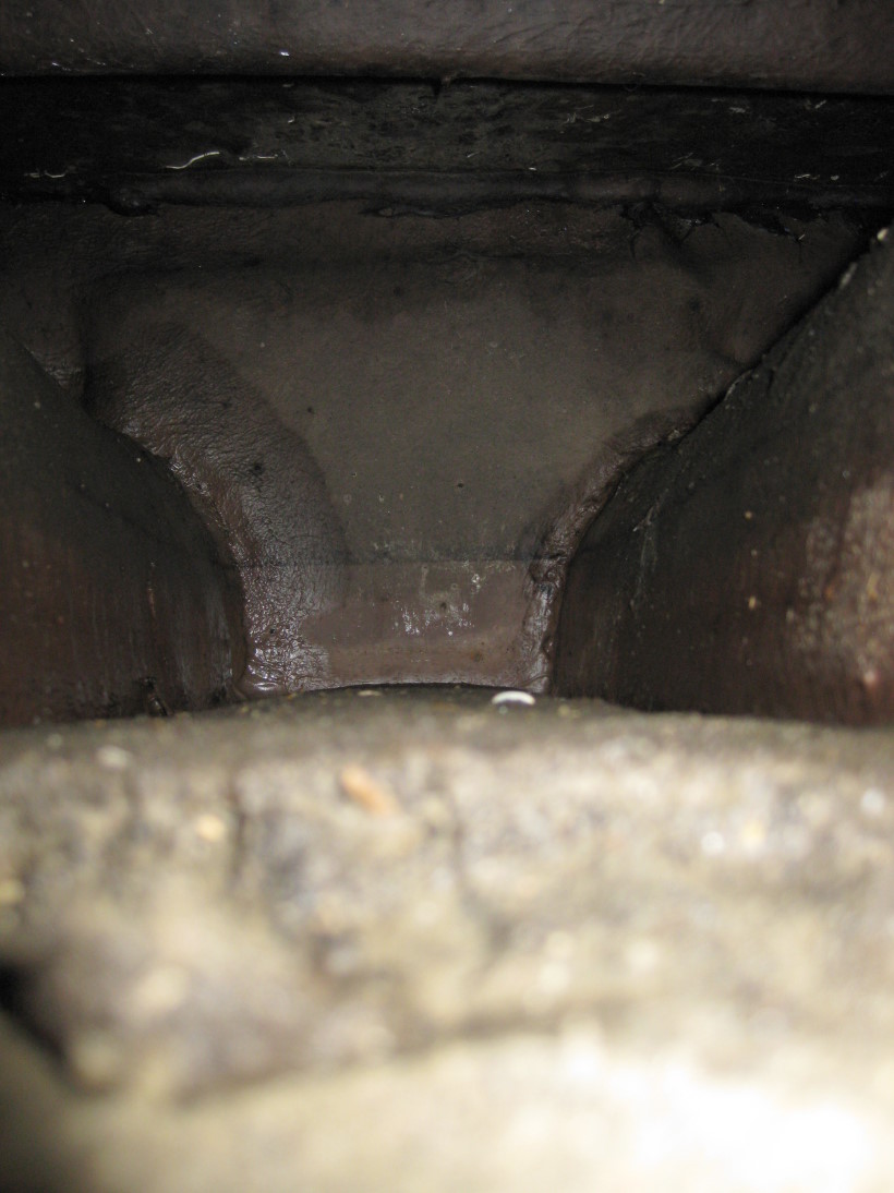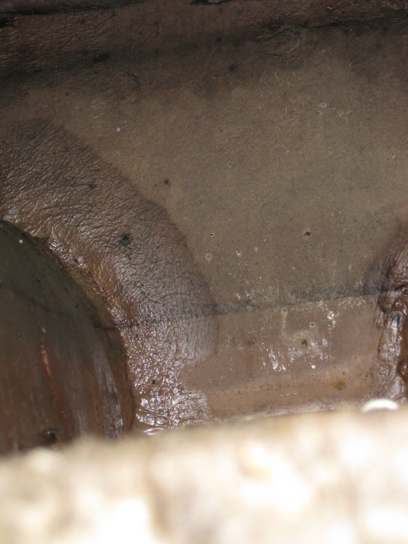 Dies sind 2 Fotos in den Ballasttank vom Loch, wo das Ballastventil montiert war. Dies stammt noch von der Zeit vor der Sanierung. Im Vordergrund ist ein kleiner Sandhaufen zu sehen, da muss der Voreigner wohl mal trockengefallen sein. Es ist aber deutlich zu sehen, dass die stumpfen Anschlüsse des Schotts komplett undicht waren, da sie noch nass waren, also Feuchtigkeit aufgenommen haben.