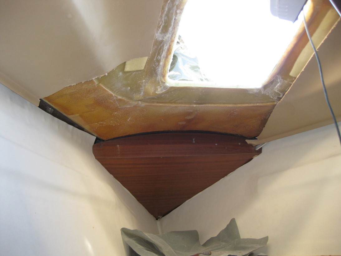 weil ich die originale Decksluke durch eine Standardluke ersetzt habe, musste ich die gewölbte Öffnung plan machen. Dazu musste ich auch von innen ran und da war mir die Innenverkleidung im Weg.