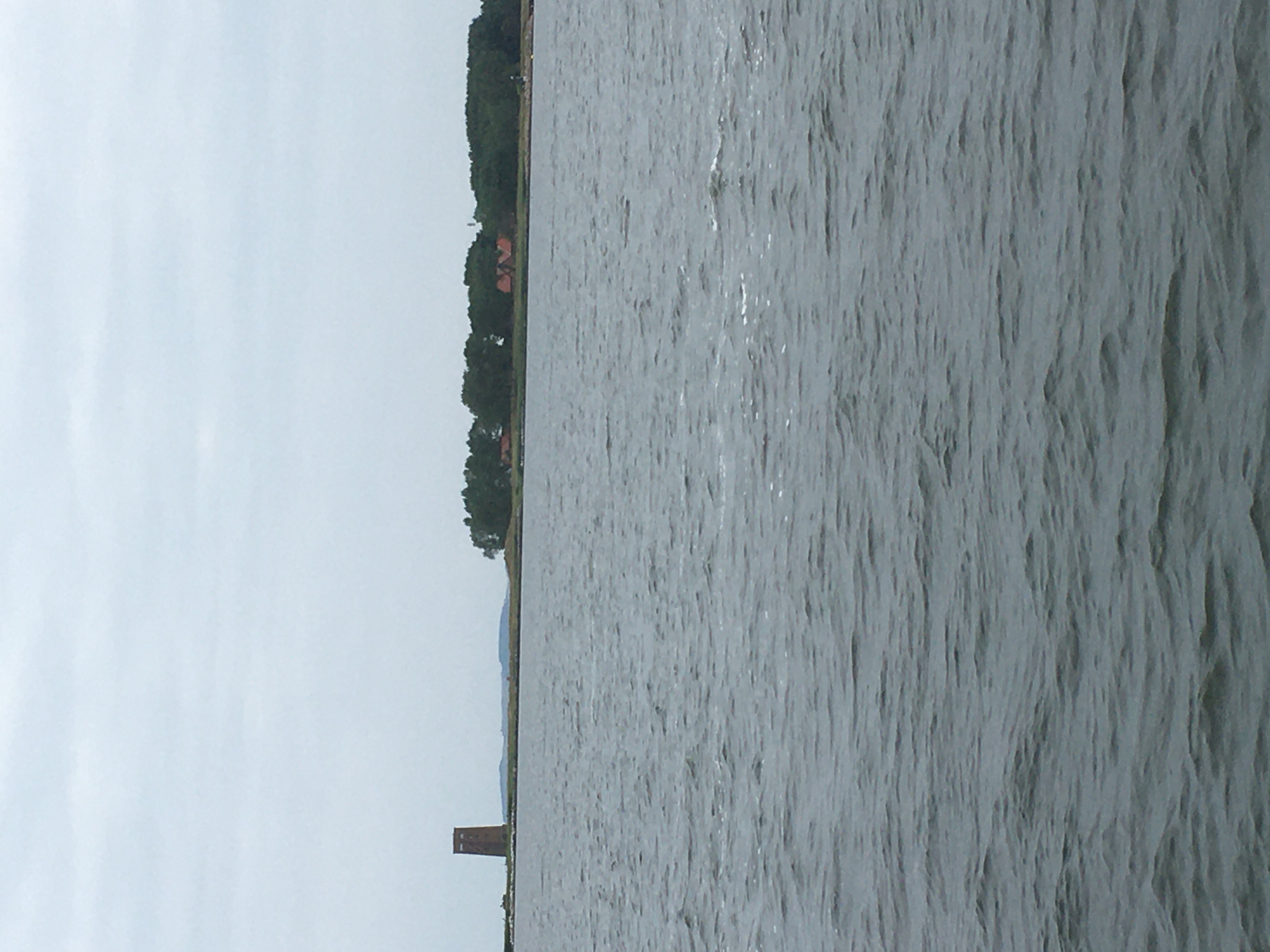 Von der Stärke war der Wind wie angesagt, jedoch nicht aus Ost (hätten wir schön mit Halbwindkurs segeln können) sondern Südost. Nach 2 Stunden Motorfahrt auf der Swine haben wir das Stettiner Haff erreicht. Dieses empfing uns mit einer mächtig aufgebauten Welle. Half nichts wir mussten durch. 2 Reffs rein und die Fock raus und kreuzen. Die Welle stieg mehrfach ins Cockpit. Am späten Vormittag ließ der Wind etwas nach, die Reffs kamen raus und die ganze Sache ging entspannter weiter. Der Wind schwächte weiter ab. Höhe Ziegenort haben wir die Segel geborgen und nach 3-stündiger Motorfahrt die Marina Goclaw erreicht. Der Mast wurde gelegt und es wurde das nahende Ende des Urlaubes deutlich.