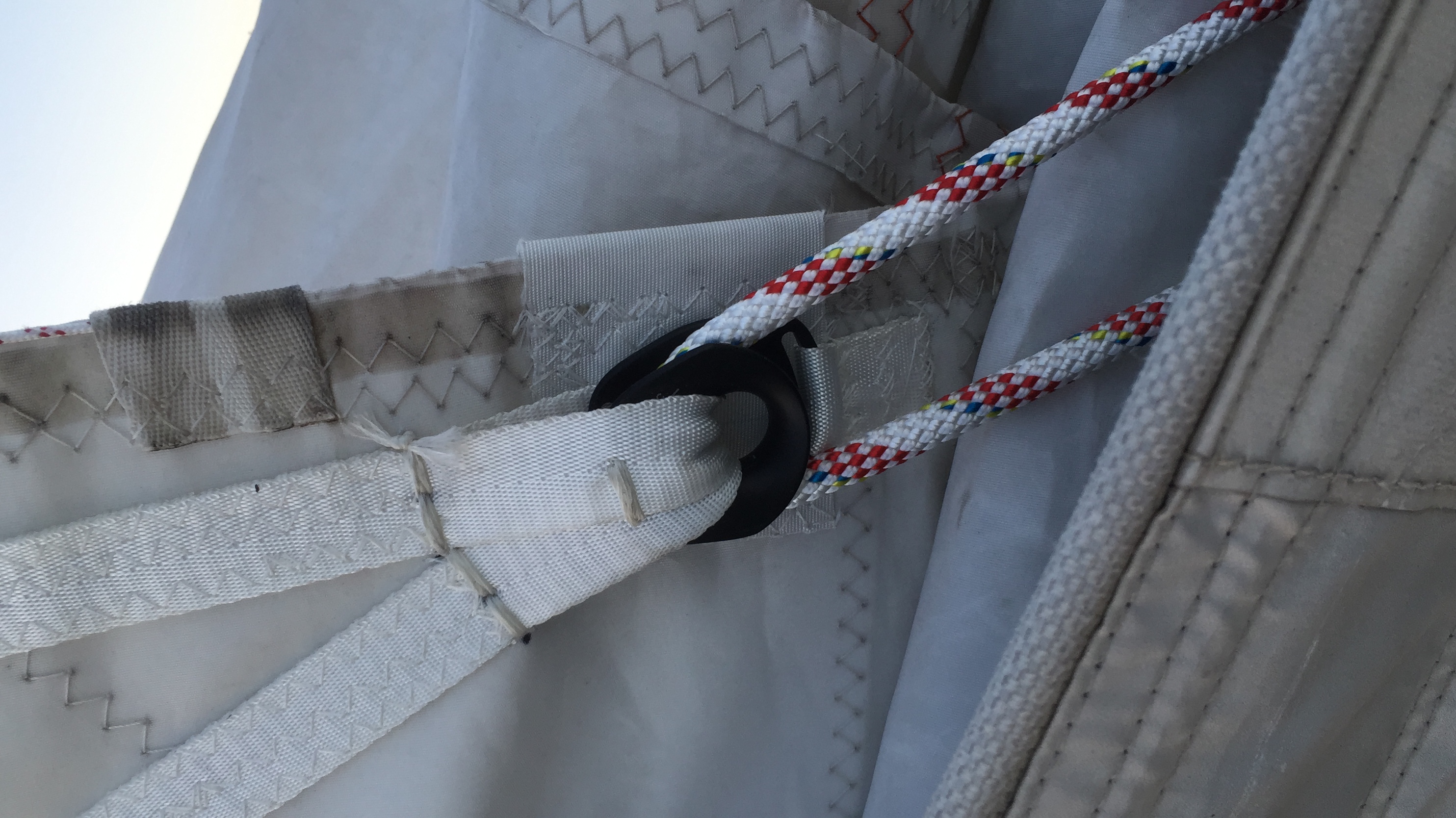 Ich würde es definitiv so wie Uli machen. Diese Lösung war aber schon installiert (verbastelt?) Ich glaube es ist eine gängige Methode auch auf grösseren Schiffen, dass das Grosssegel am Mast eingehängt werden muss.