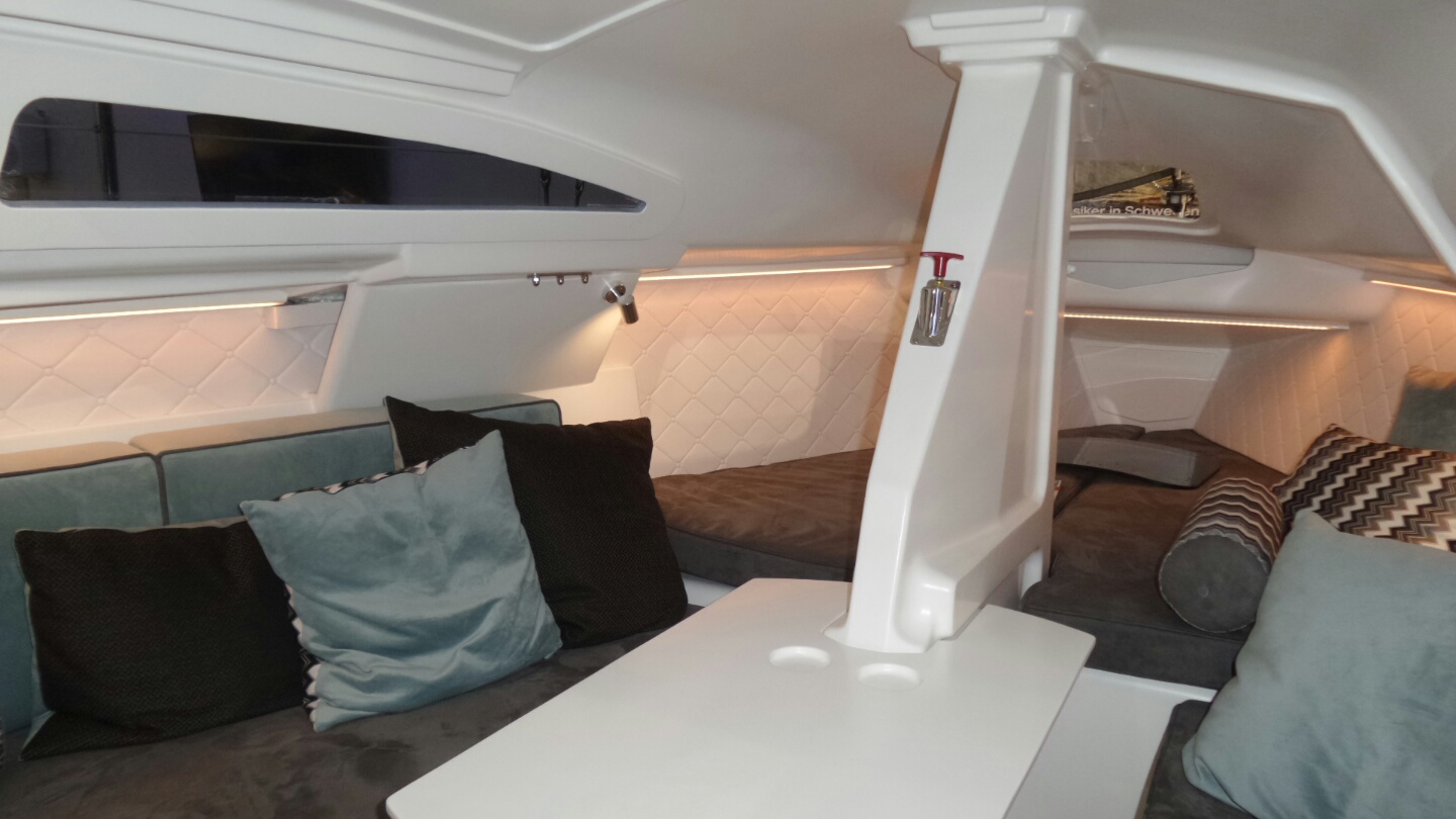 ich war am vergangenen Sonntag auf der Boot 2019 und konnte das Refit live anschauen und auch mal innen probesitzen. Jetzt mit Innenpolstern und Schnickschnack.