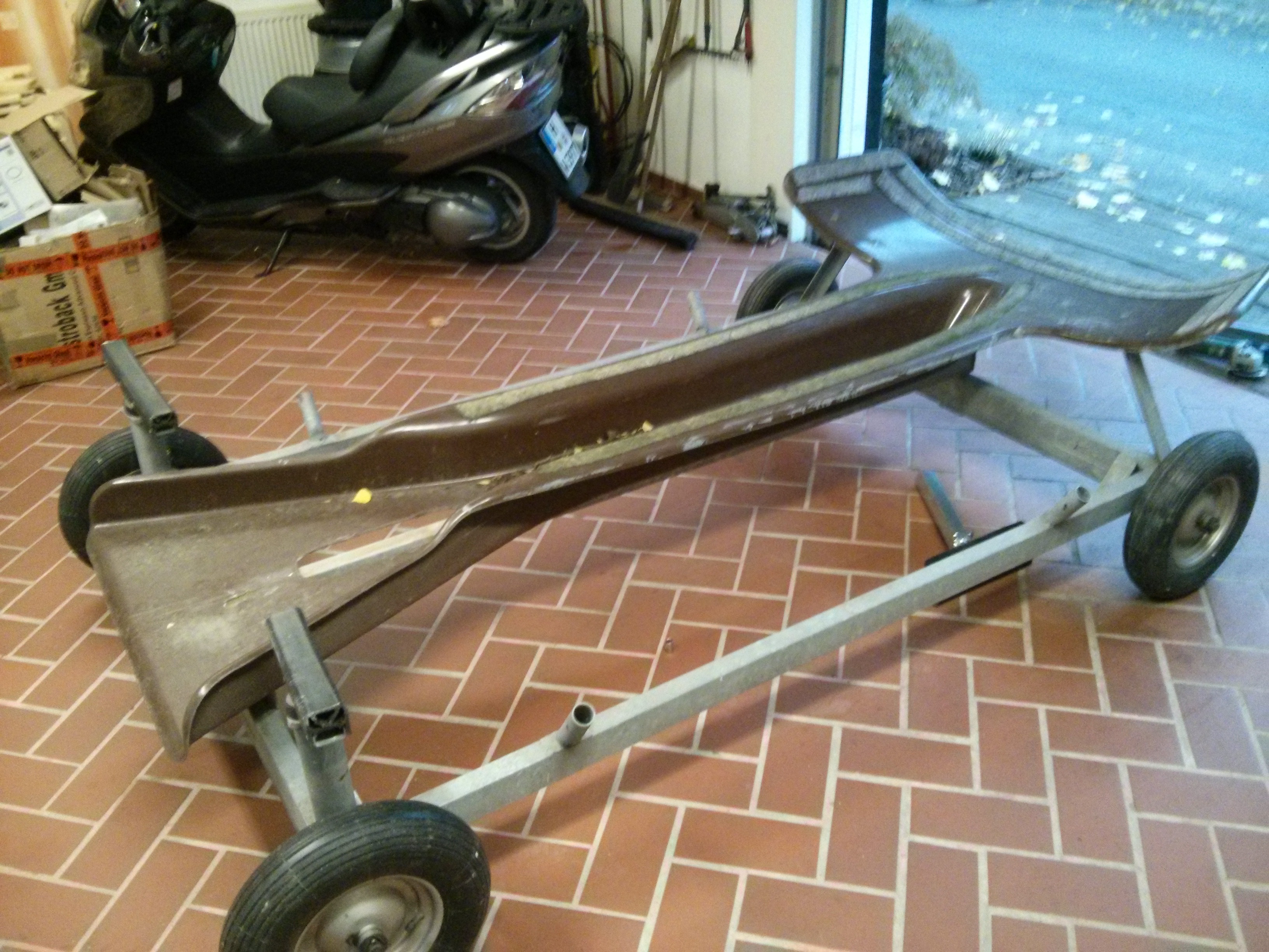 Da ich den Trailer umbaue, brauche ich die Wanne nicht mehr. An der Wanne ist nicht gebrochen oder anderweitig beschädigt. Dazu gibts die Stahlteile; bedingt durch den Aus/Abbau etwas "angegangen", sowie die Schrauben. Preis bei Abholung in (Nähe) Hannover 100,-. Ich bin auch gern bereit das Ding einer Spedition zu übergeben.