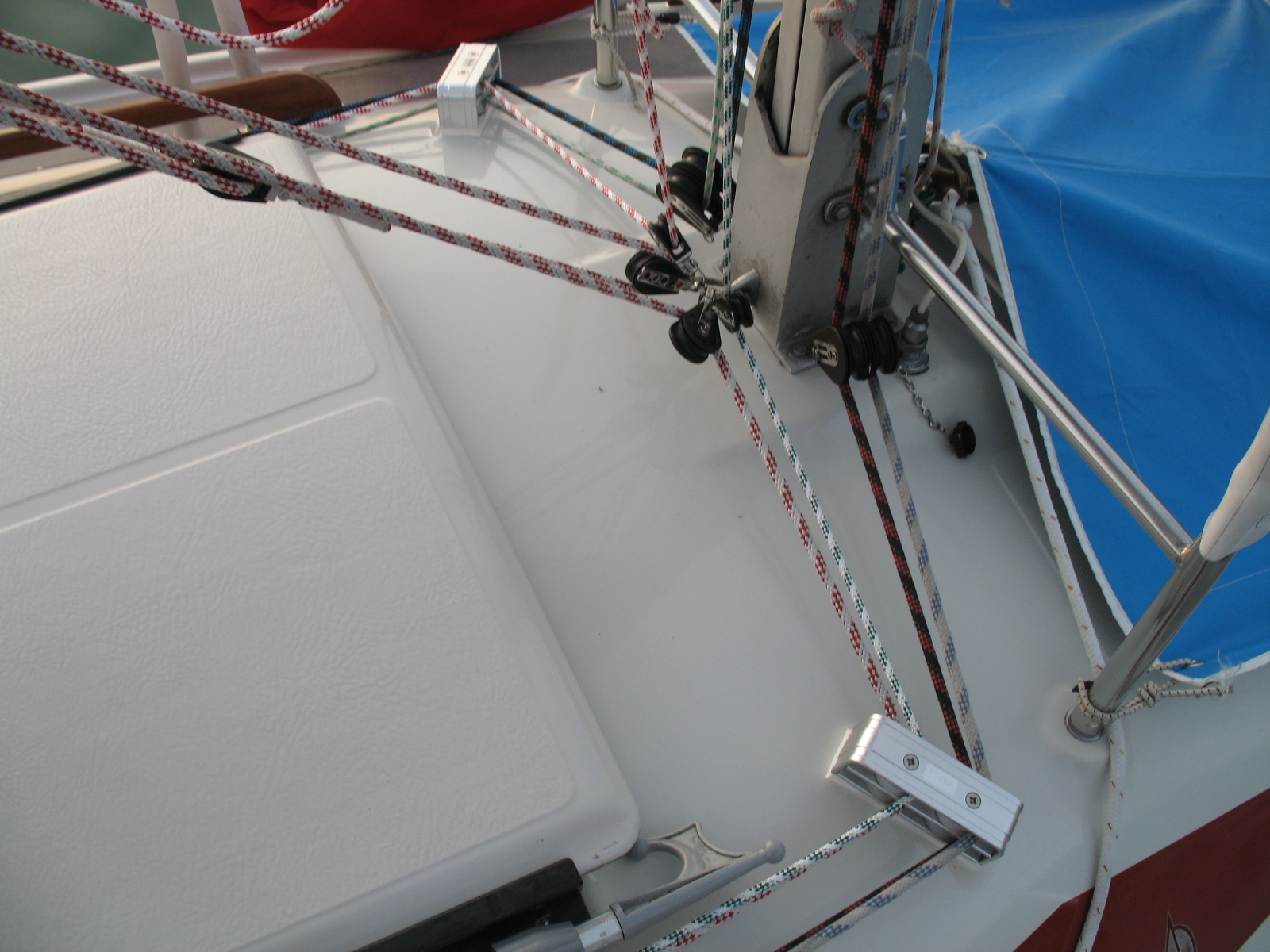 Ich habe in der Galerie einige Bilder von zusätzlichen Umlenkrollen an Deck gesehen.