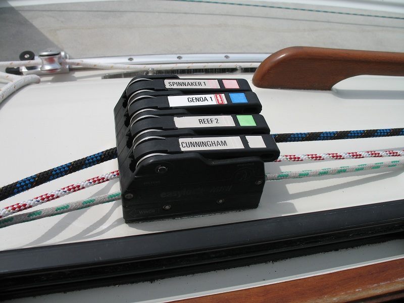 Ich habe nur die beiden Serienmäßigen Umlenkrollen auf dem Kajütdach benötige aber für das reff und die ins Cockpit geführte Dirk mehr Rollen.