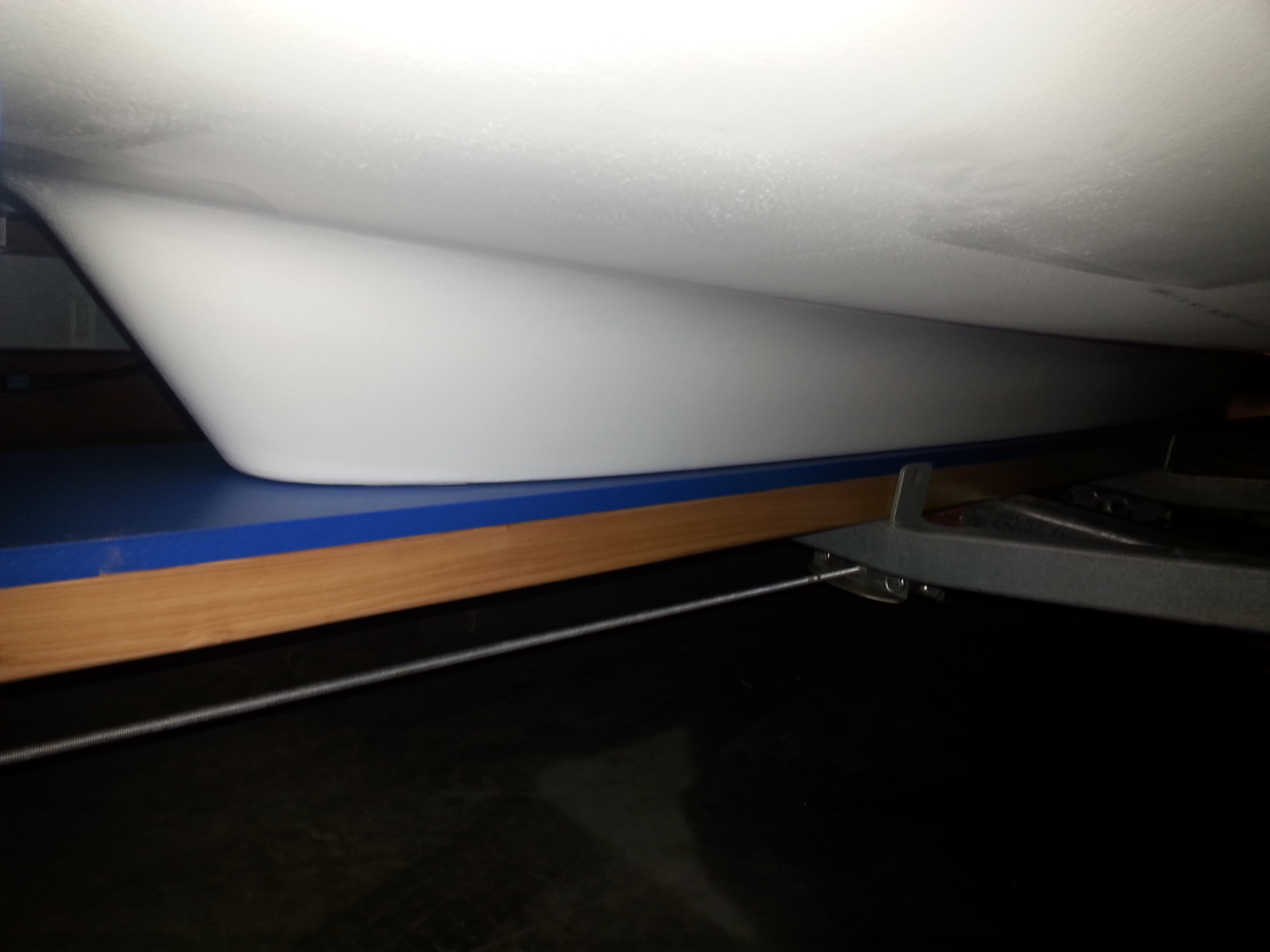 Vielen Dank Gerald für deine zusätzliche Gedanken. Das Wasserballastloch im Brett werde ich nicht machen weil ich (auch) mit Wasserpumpe den Wasserballast füllen und lehr machen werde. Für den Gurt hätte ich auch eine niedrige Stelle in Gedanke aber dann ist diese unter=ausser dem Ankerkasten und deshalb an einer empfindlicher Stelle für Wassereinbruch ... Ort/Lösung noch zu definieren. Alle blaue Rollen haben jetzt 'BootsKontakt' und deshalb hoffe ich dass das Boot beim Aufslippen automatisch zentriert aber ich werde gerne in der Zukunft zugeben dass das vielleicht nicht geklappt hat und bessere Kielkastenseitenführung brauchte. Die hinteren Seitenrolle sind allerdings höher aber wenn der Trailer im Wasser ist an der tiefsten Stelle wobei die Hinterseite des Bootes schon höher treibt besonders vielleicht mit lehrem Wasserballast (???)...