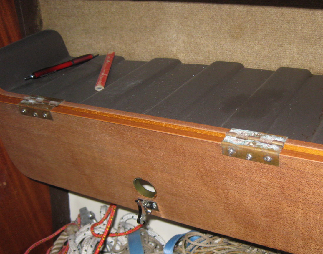 ich habe meine Schiebepantry an Backbord neben dem Niedergang entfernt. Das verbliebene Loch möchte ich nun mit einer Tür verschließen. Dafür benötige ich möglichst 2 Scharniere, wie sie bei allen anderen Türen auch verbaut wurden: