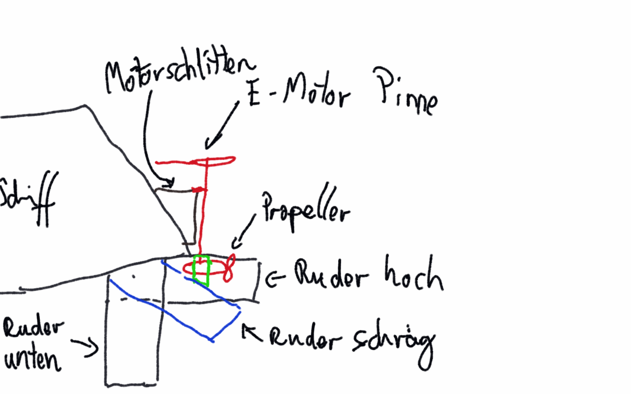 Eine andere Idee, wäre das Klappruder nur teilweise hochzuziehen, so dass es schräg steht. Das scheint aber nicht zu gehen?! Ich finde es läßt sich ohnehin schwer hochziehen und dann nur hoch oder runter, dazwischen habe ich nichts hinbekommen.