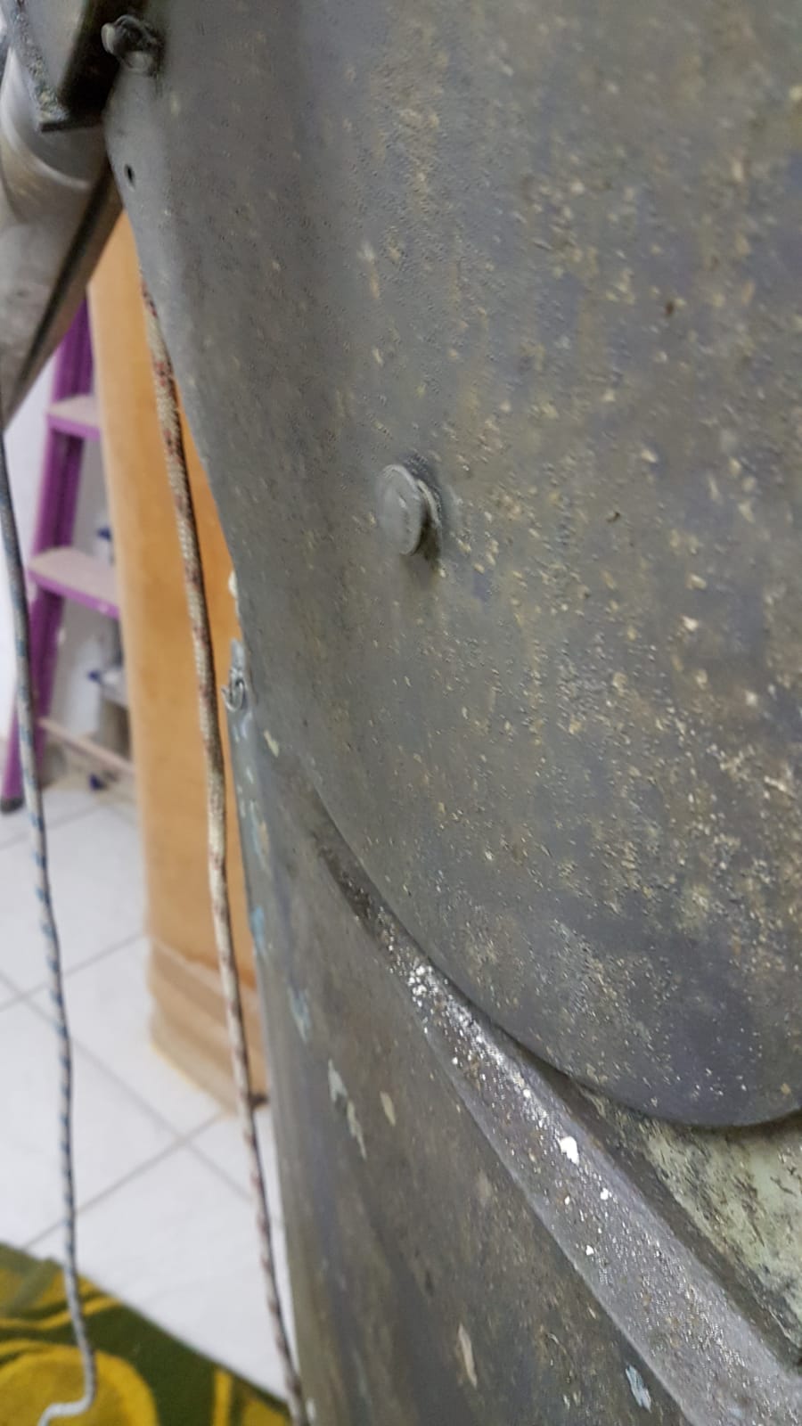 Dann geht die Leine m.E. über eine Umlenkrolle, deren Umfeld recht vergammelt aussieht: