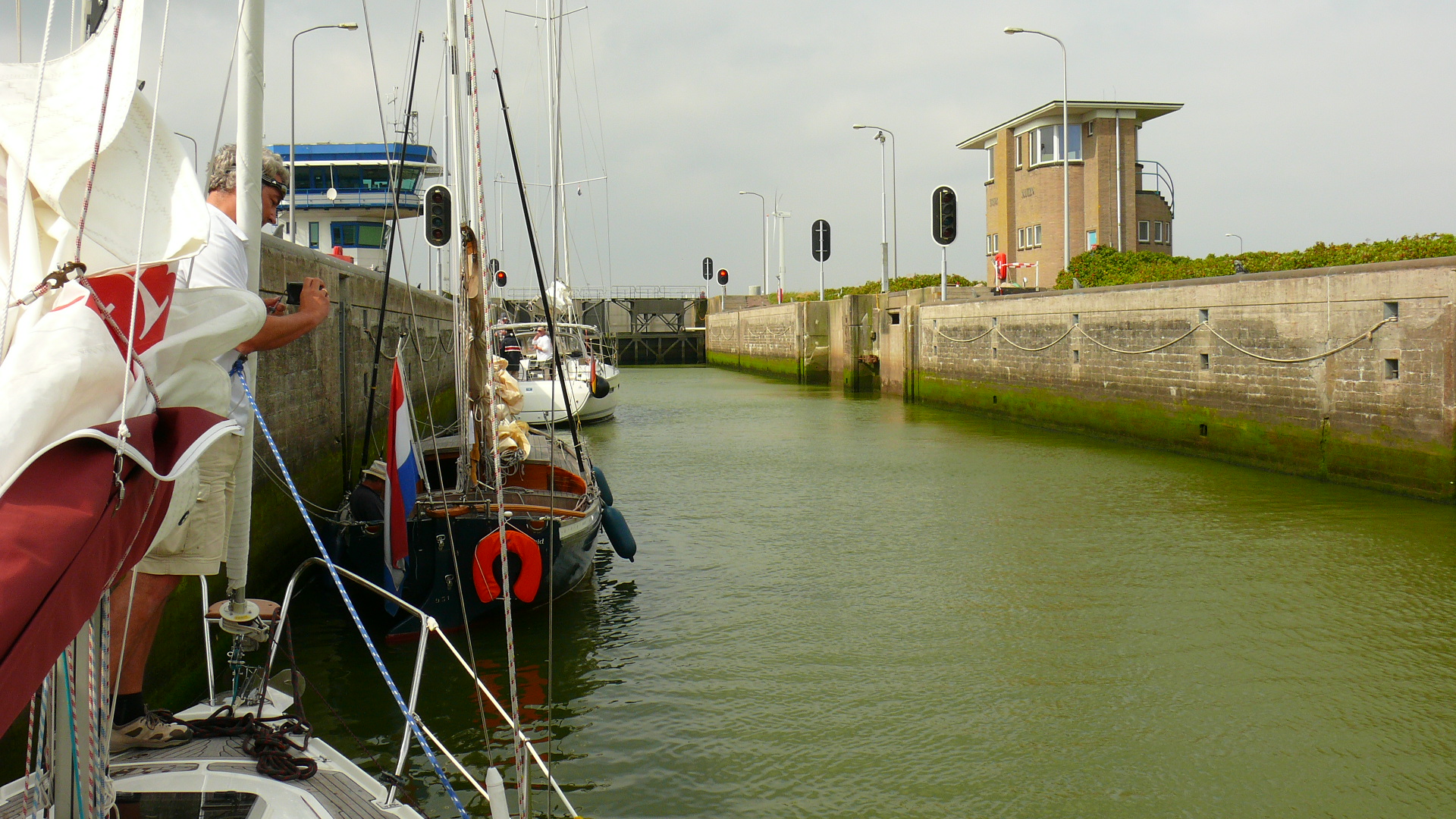 in Holland ist der Hub in einer Schleuse ja sehr gering. In Stavoren oder Lemmer sind es nur 20-30 cm, wenn es in Den Oever oder Kornwerdezand ins Waddenmeer Richtung Texel oder Vlieland geht hast du auch nur maximal 60 -80 cm. Das ist alles harmlos.