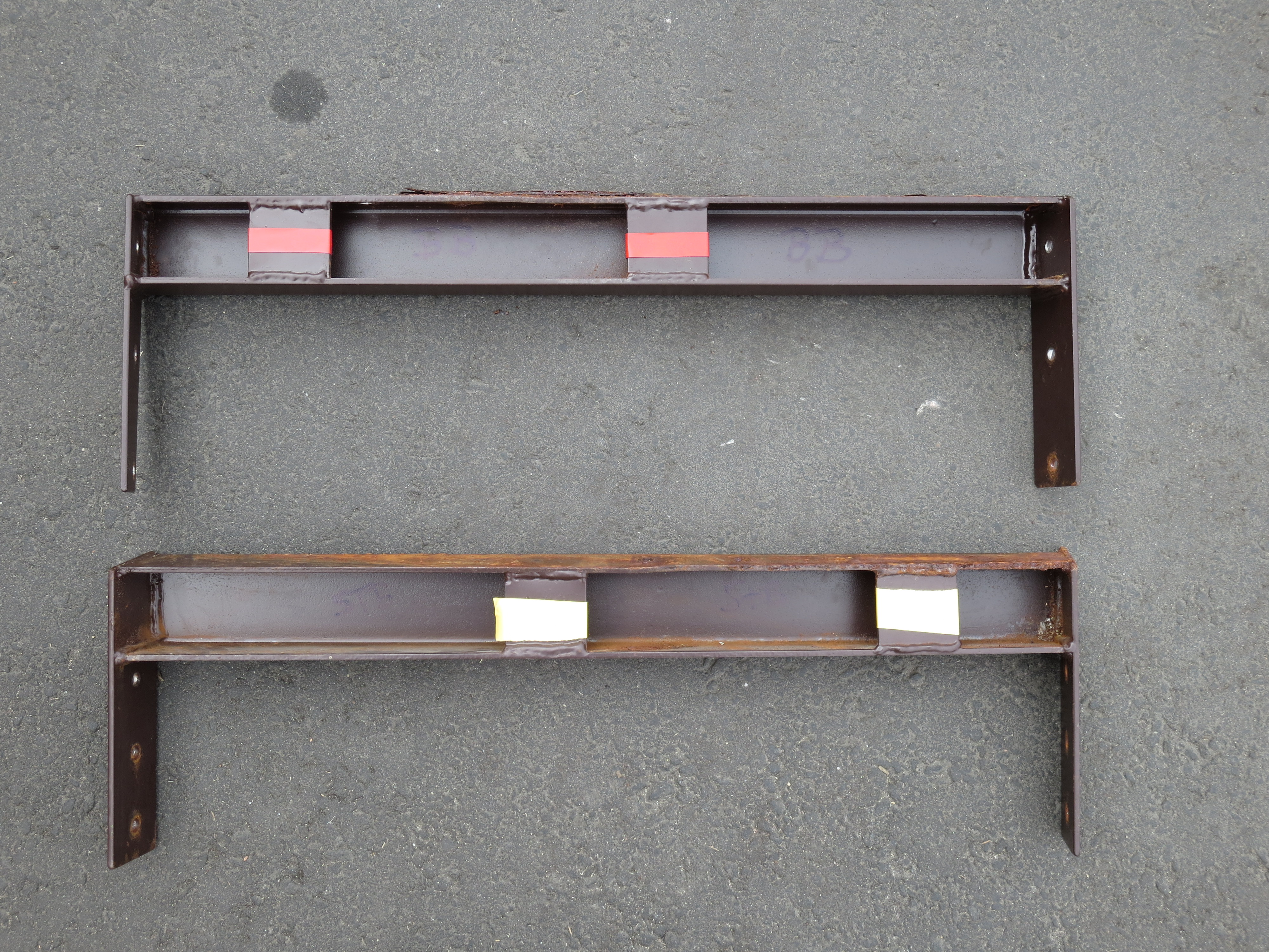 Ich werde die Traversen nun entrosten und dann entscheiden, ob sie noch verwendbar sind. Sollten sie es sein, will ich erneut eine Verstärkungsplatte aufschweißen lassen und danach das Ganze ordentlich mit Korrosionsschutz-Grundierung behandeln.