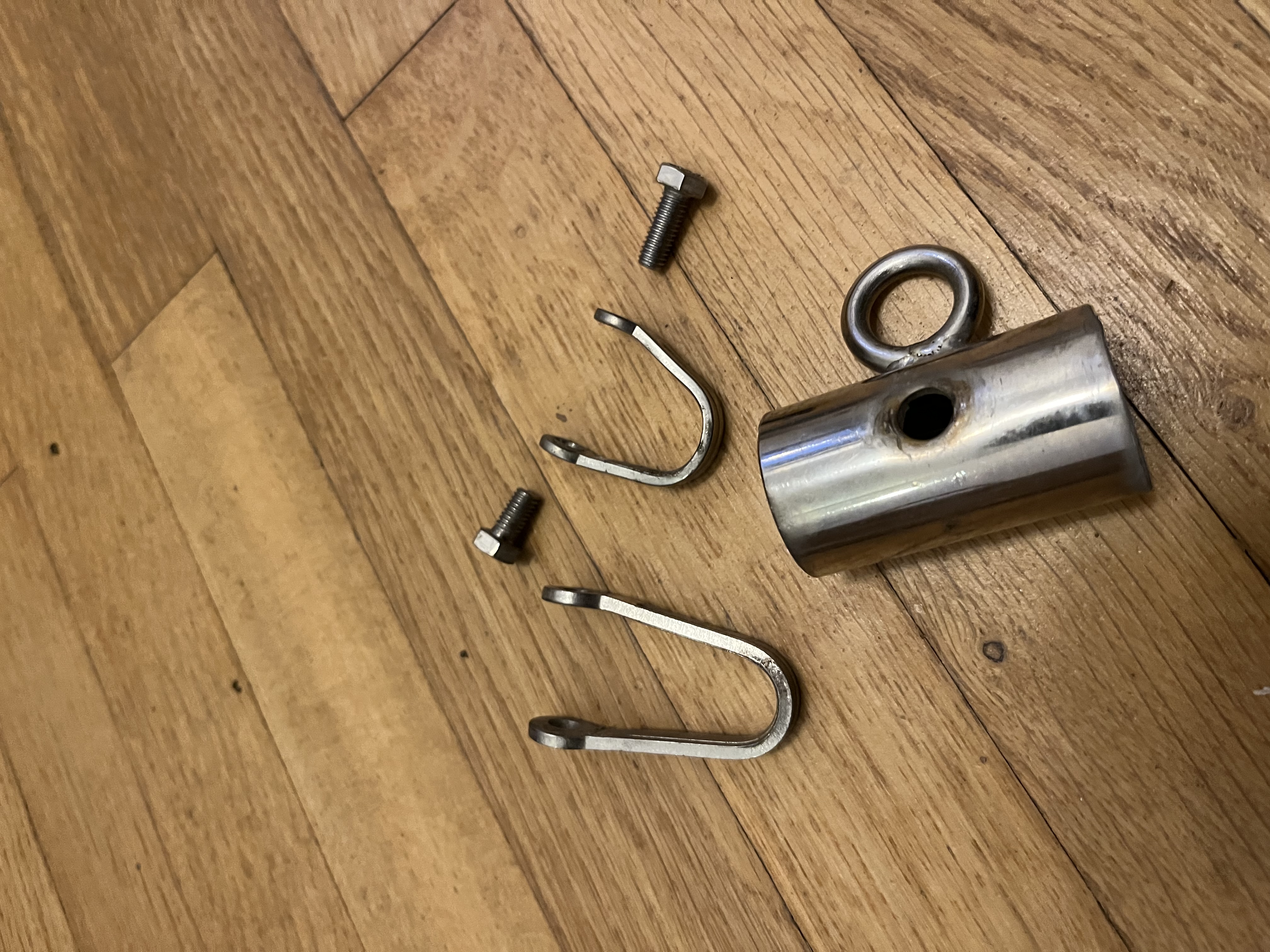 verschiedene bügel die alle an den 2 m6 schrauben festgemacht werden um zum beispiel einen unteren relingsdraht zu montieren: