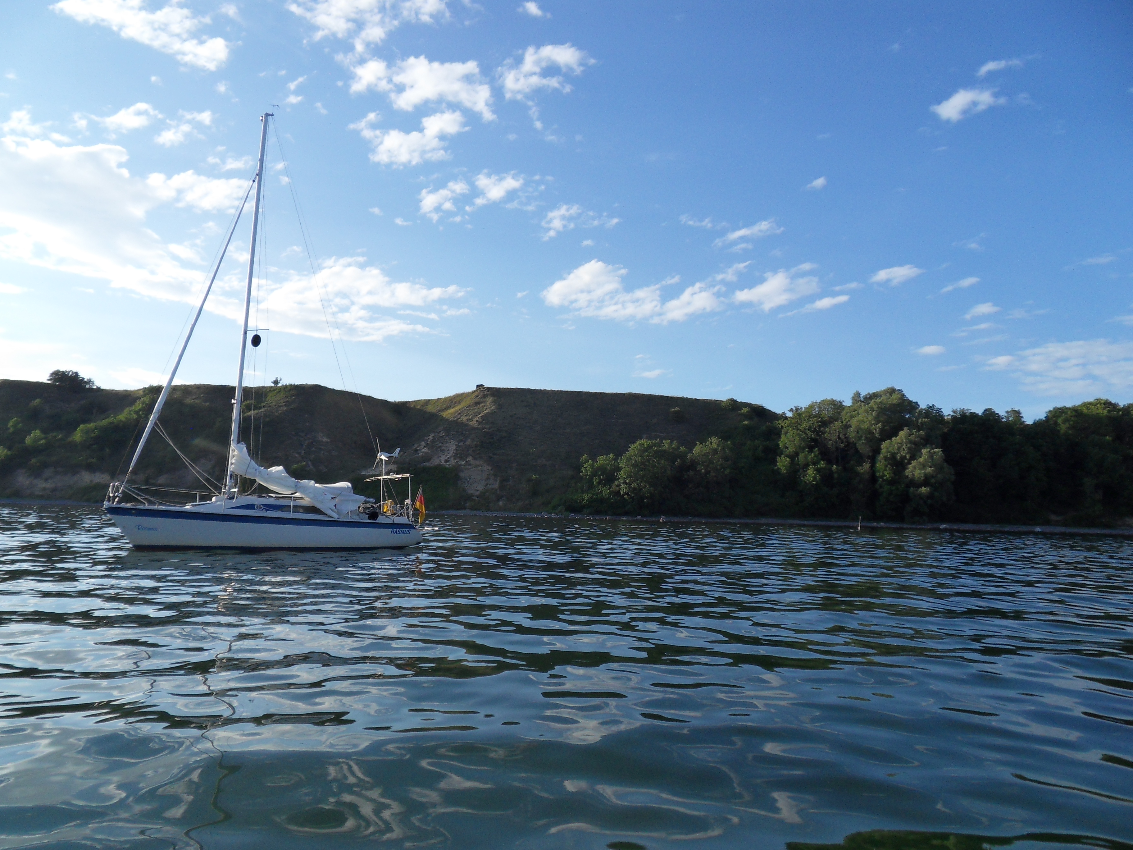 Moin Stascha, du täuscht dich nicht, der Mast ist tatsächlich leicht nach achtern geneigt. Auf dem zweiten Bild kommt es zwar etwas stärker rüber, aber es war definitiv gut segelbar. Es war die erste Saison für mich mit diesem Boot und ich hatte vorm Maststellen noch auf Rollreffanlage umgerüstet. B...