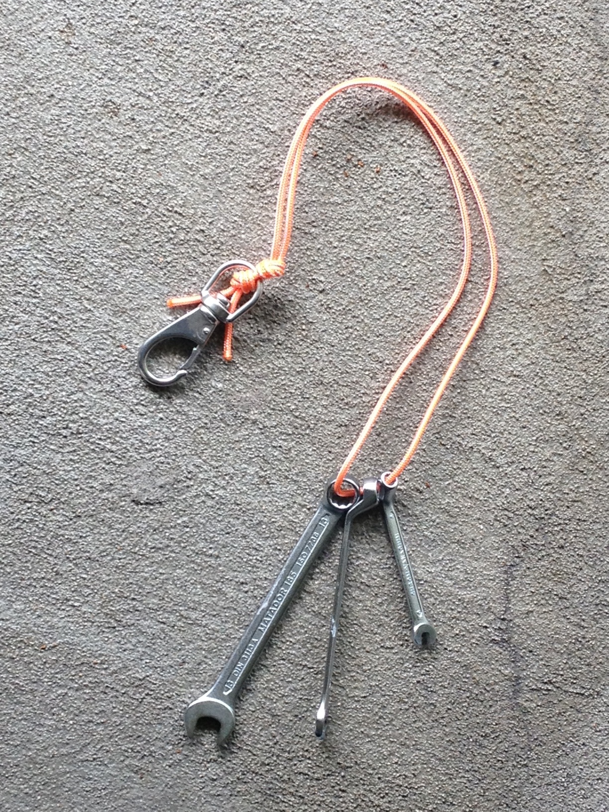 Damit ist jetzt Schluss. Ich habe die Schlüssel nun zusammengebenzelt und sichere das Werkzeug mit einen Schnappkarabiner.