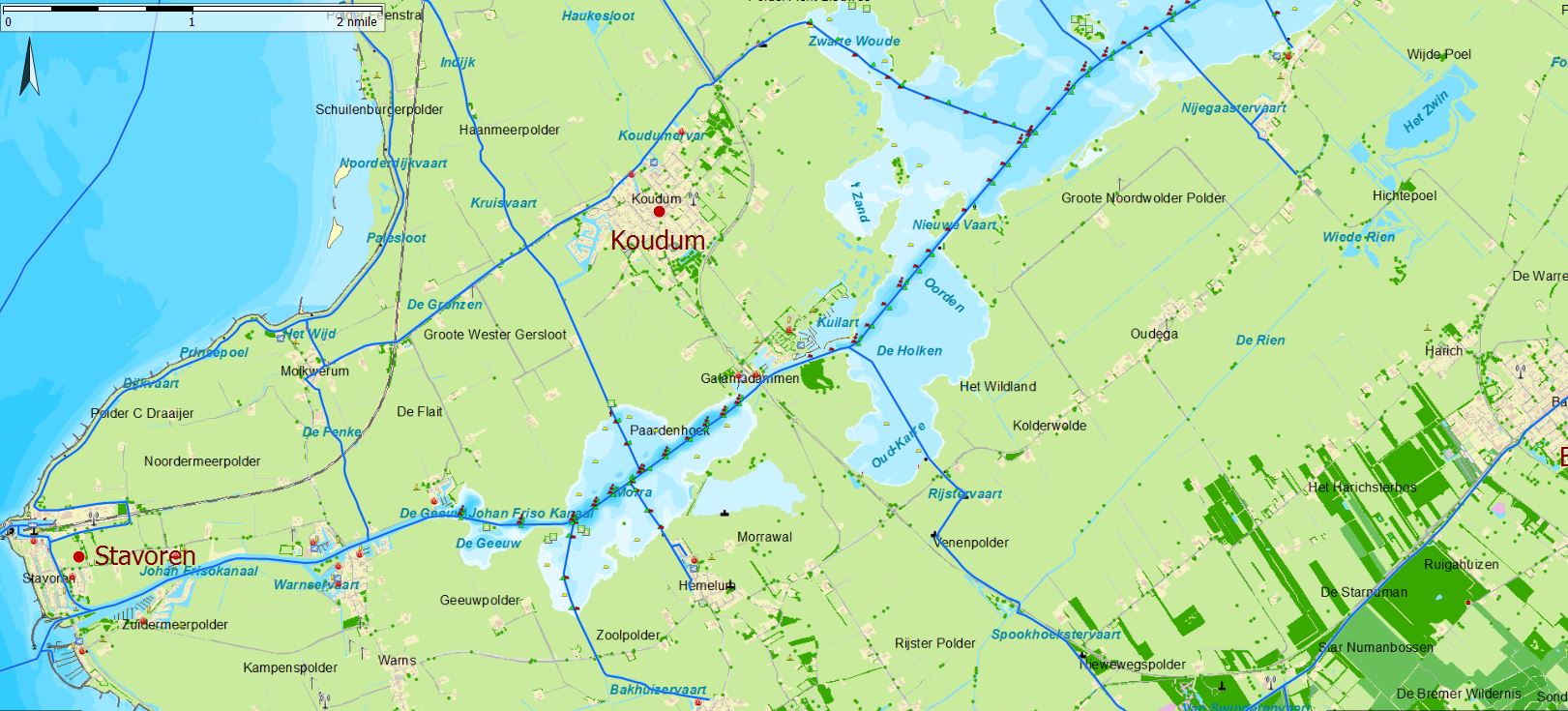 Meine Seekarten liefern erst ab Stavoren genaue Informationen.