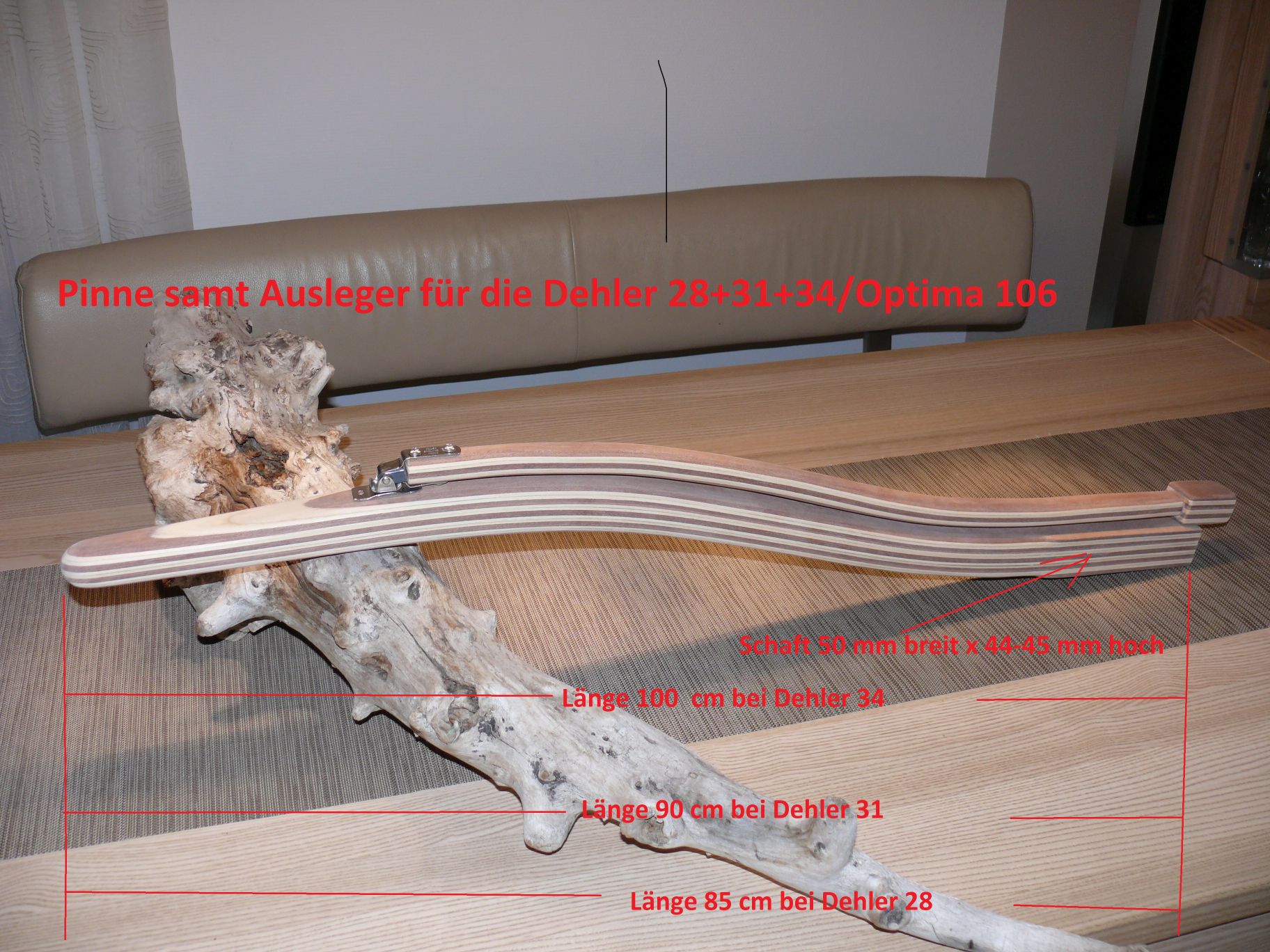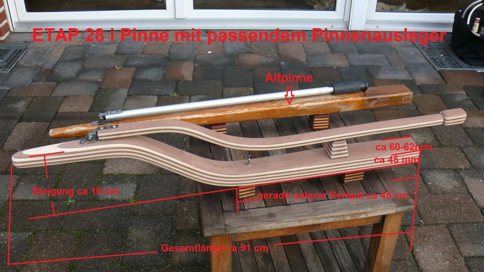 Ich habe nun mehrfach auch neben den Pinnen die genau passenden s-förmigen Pinnenausleger gebaut. Ein Augenschmeichler.